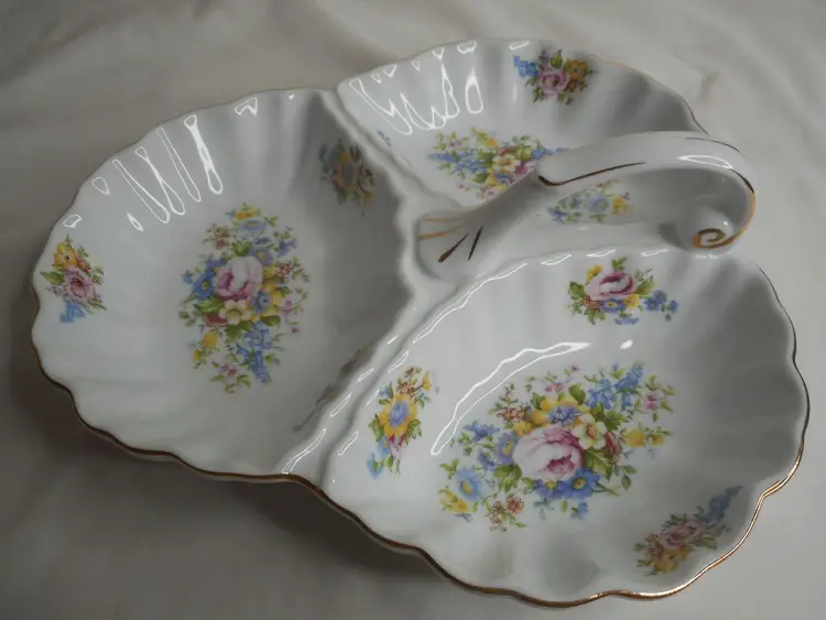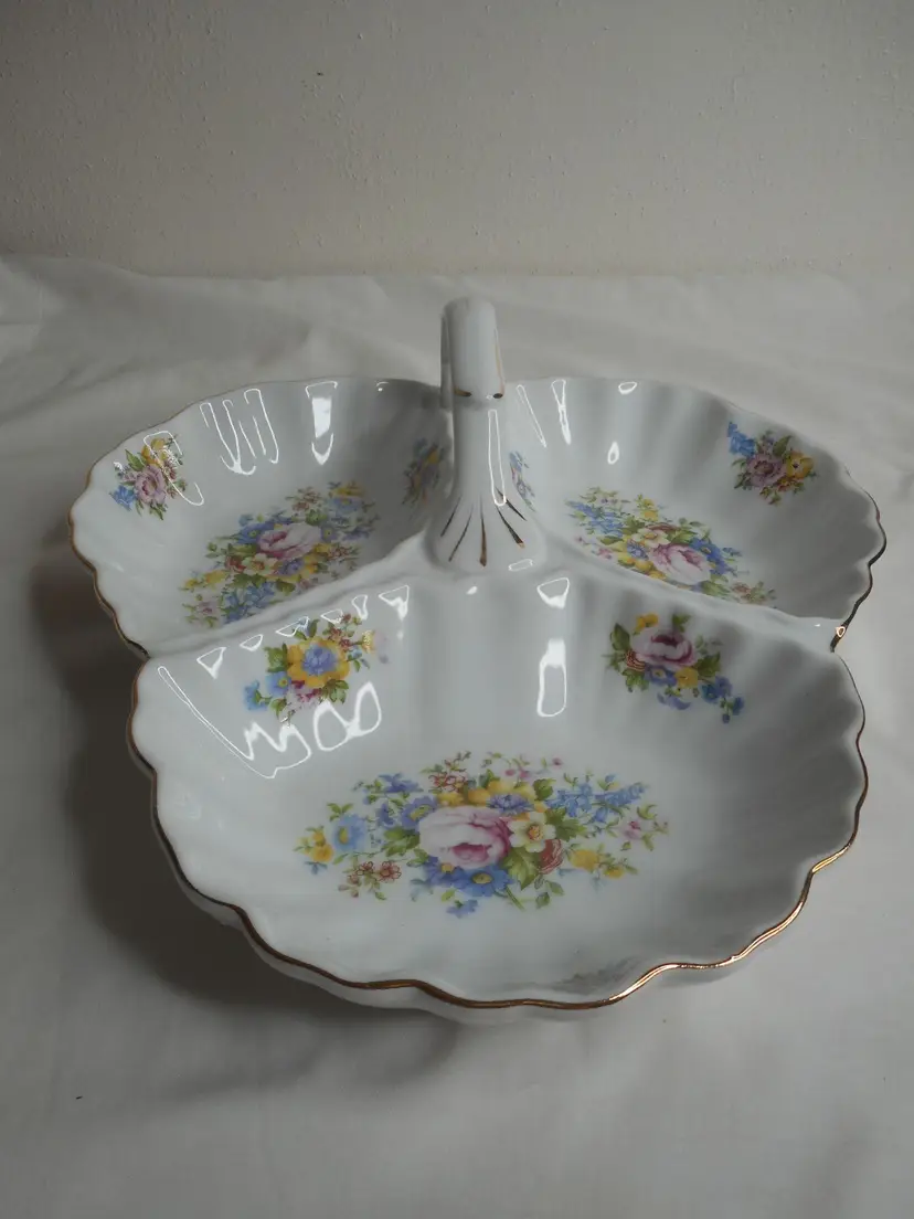 very pretty shabby chic 3 section dish for nuts, candy, keys or all sorts of things