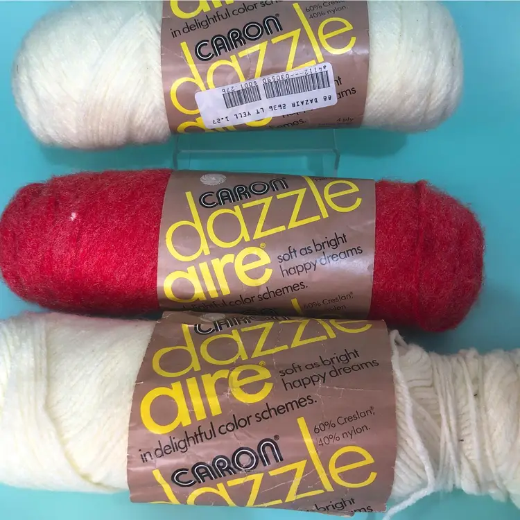 3 Skeins of Caron Dazzle Aire Yarn Yellow & Red Craft Supplies