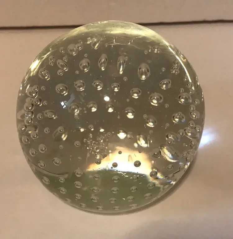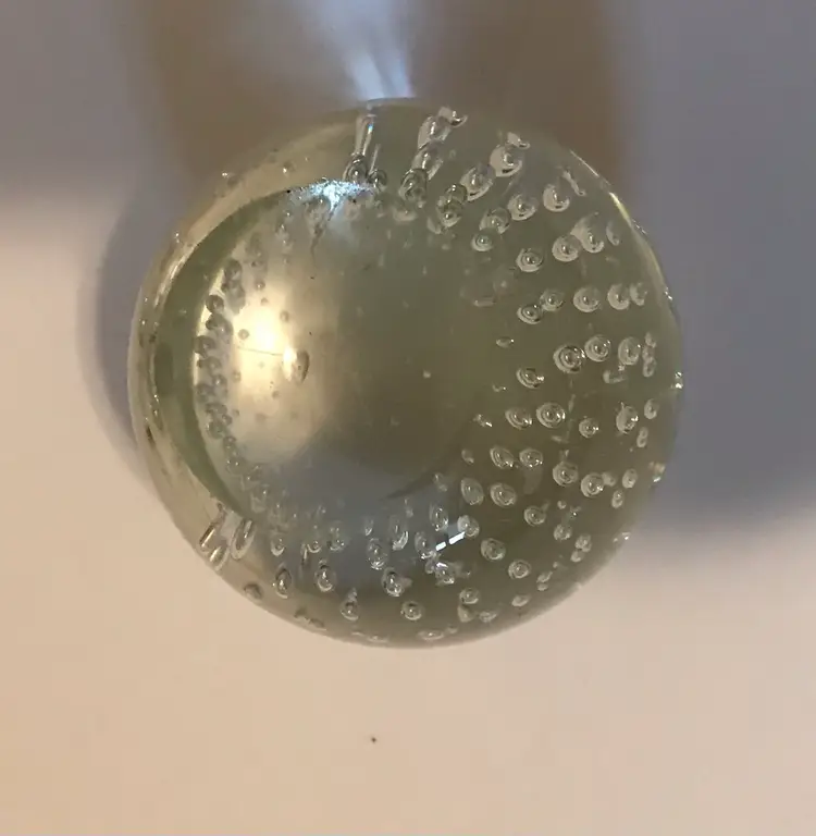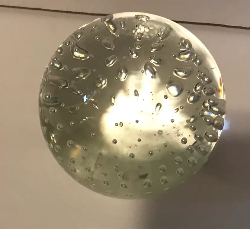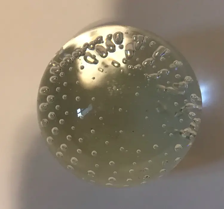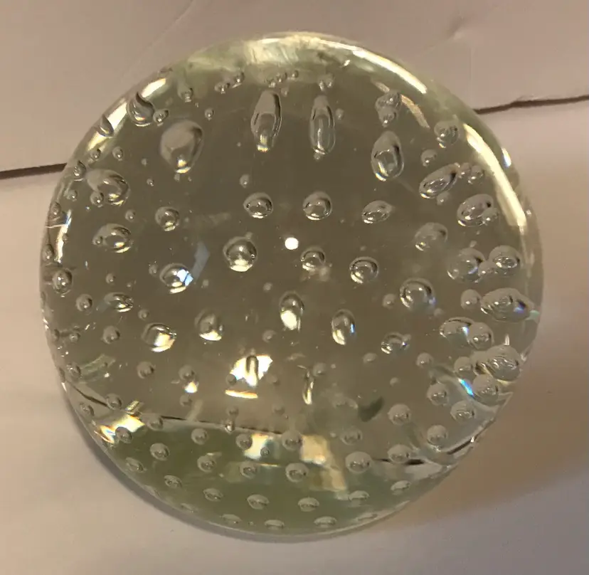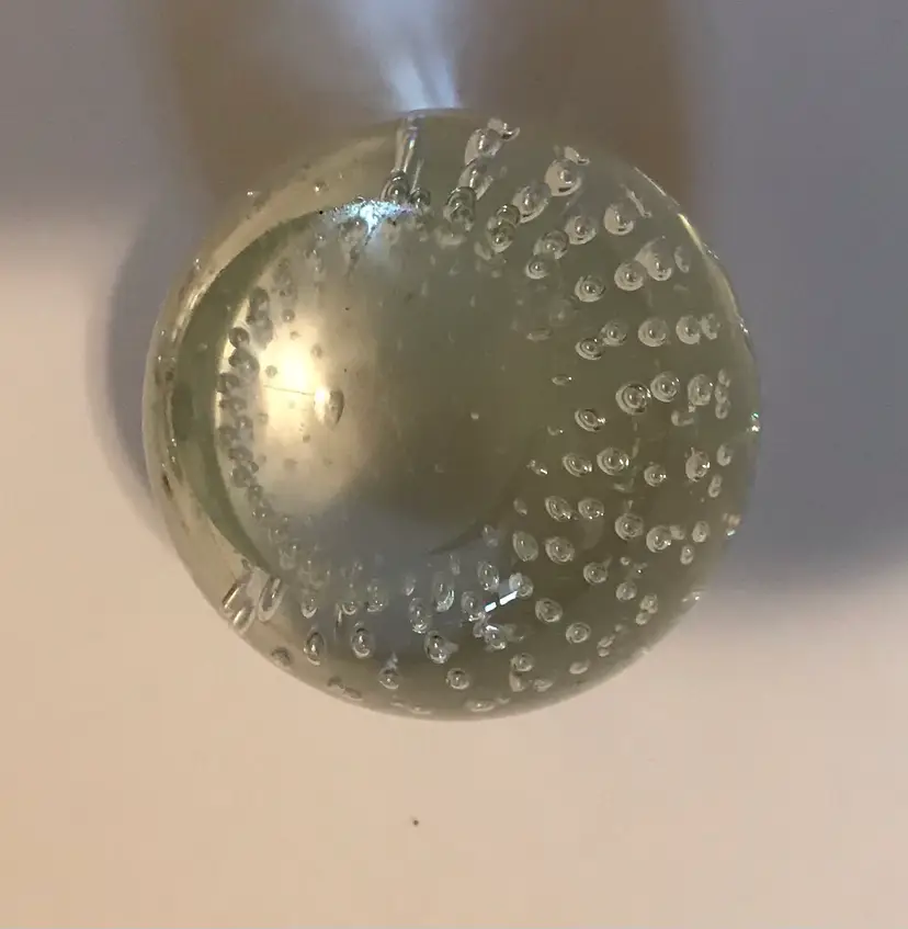 There is a bruise on this paperweight but I could not get it to show up on photo. It is busy with the bubbles so unless you hold it just right you can’t see bruise
