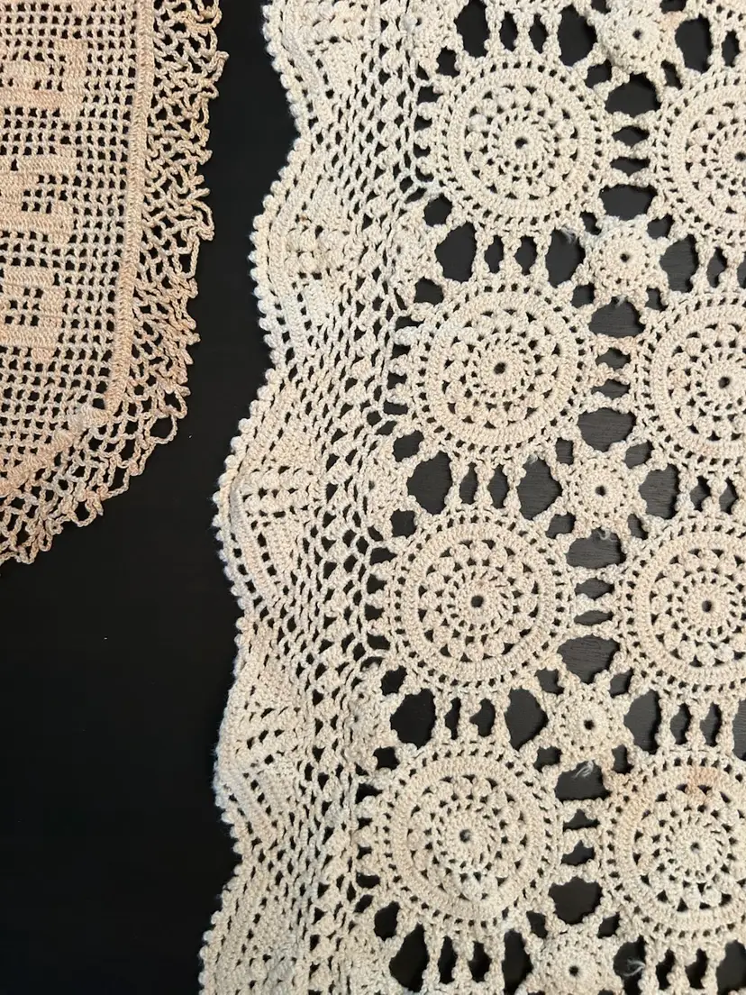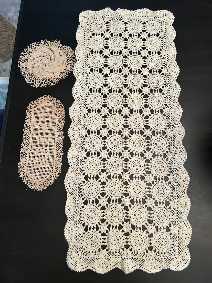 Large one has small stain, see pics, 32.5L x 13W. Bread- 11L x 4.5W. Round- 7 inches