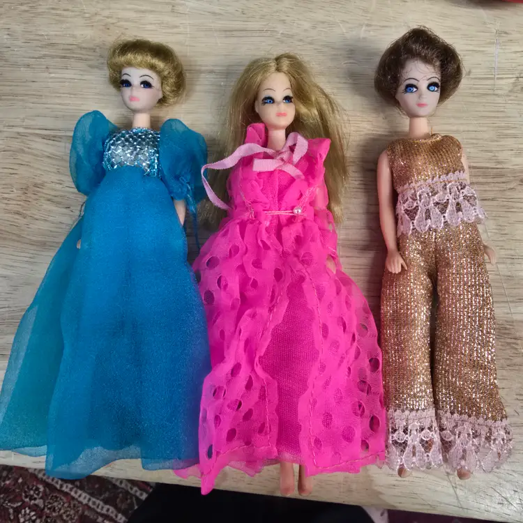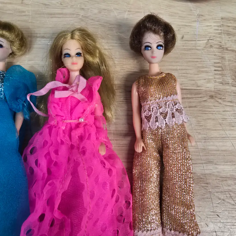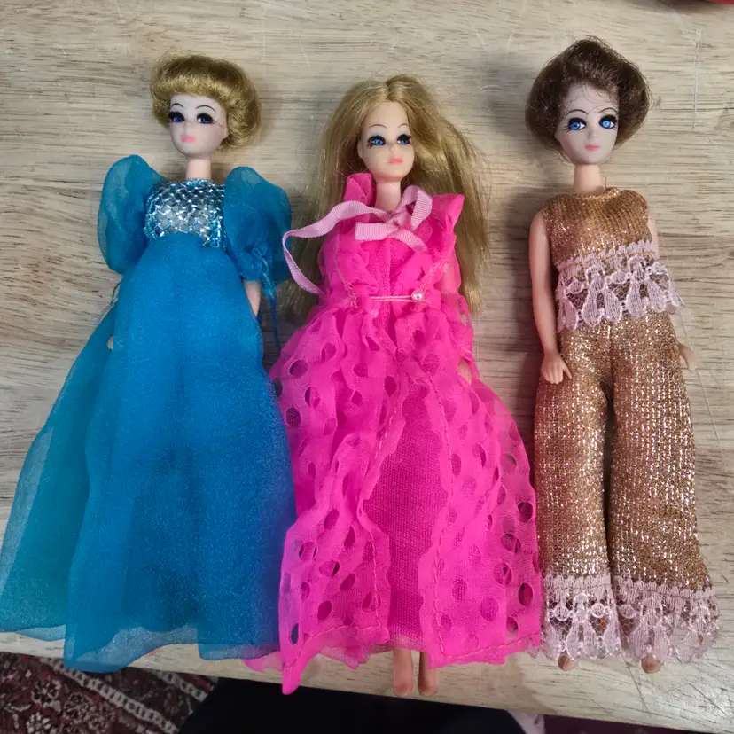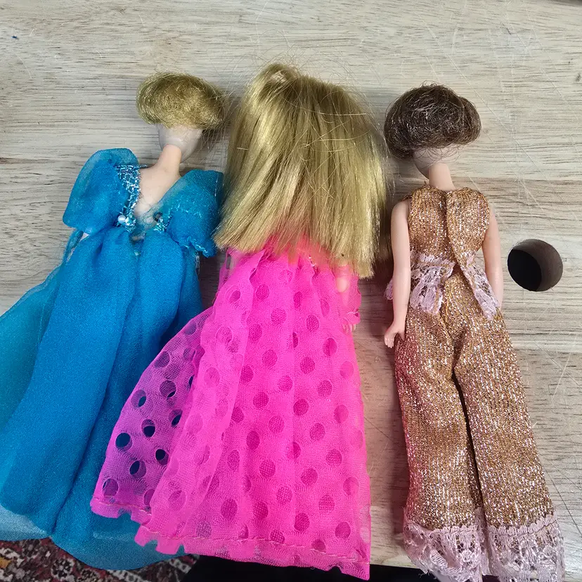 Offering these 3 vintage Topper Dolls mainly to be considered for outfits only. All of the Dolls have a slight variation of the typical blue that affects their legs and faces with one having the infamous blue spots on her knees. However, all of the outfits are in great condition. A wonderful addition to any collection. Smoke free dog friendly home.