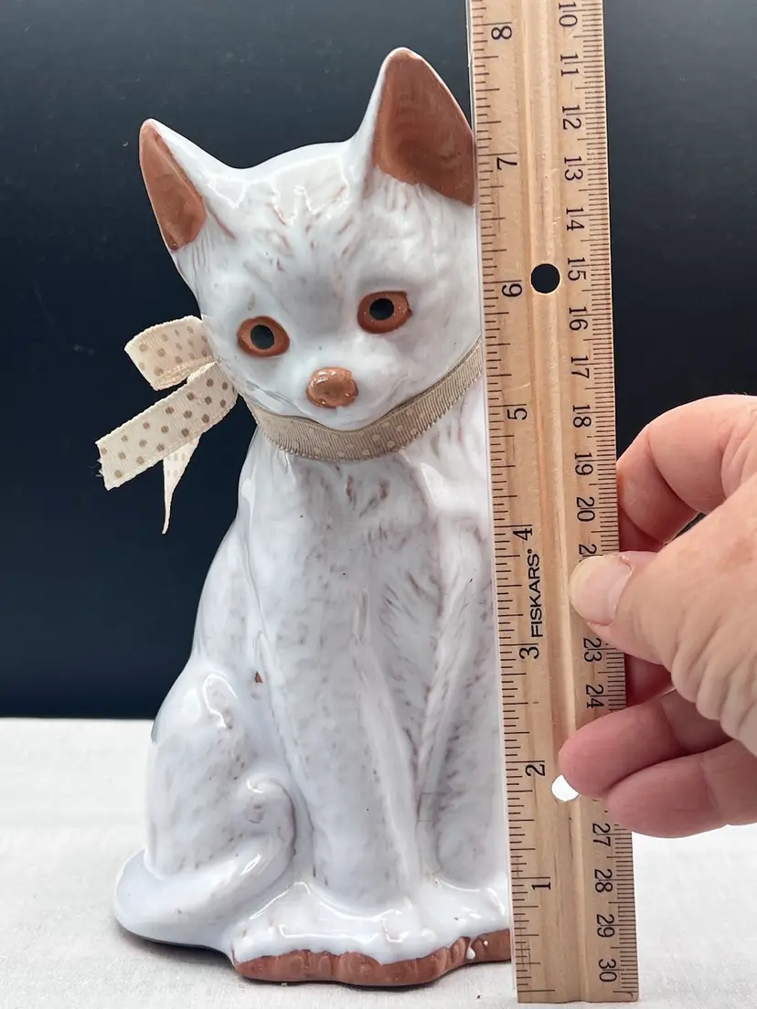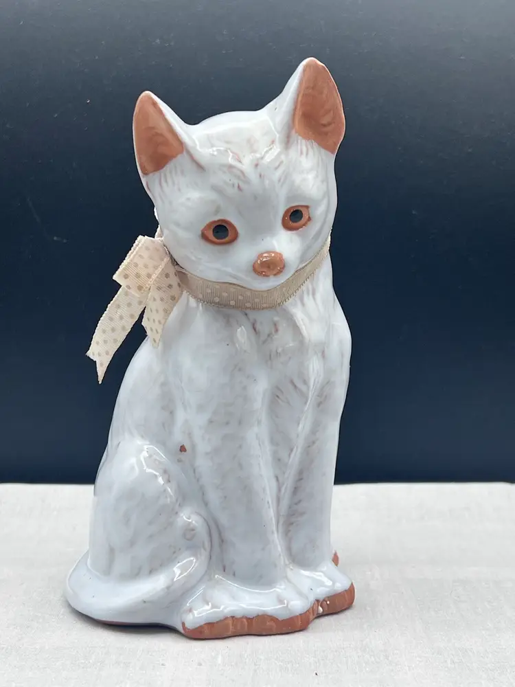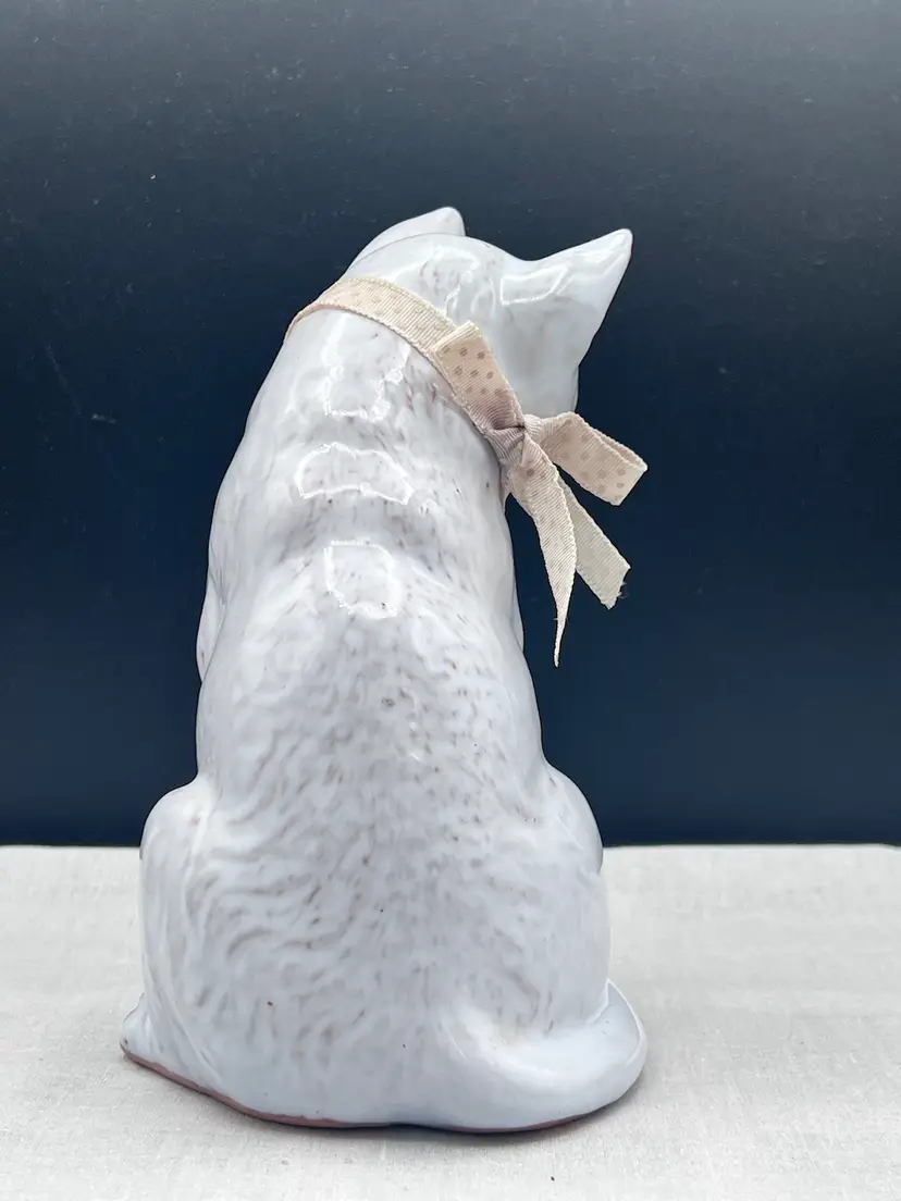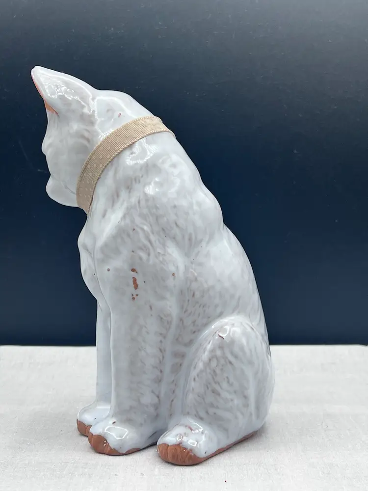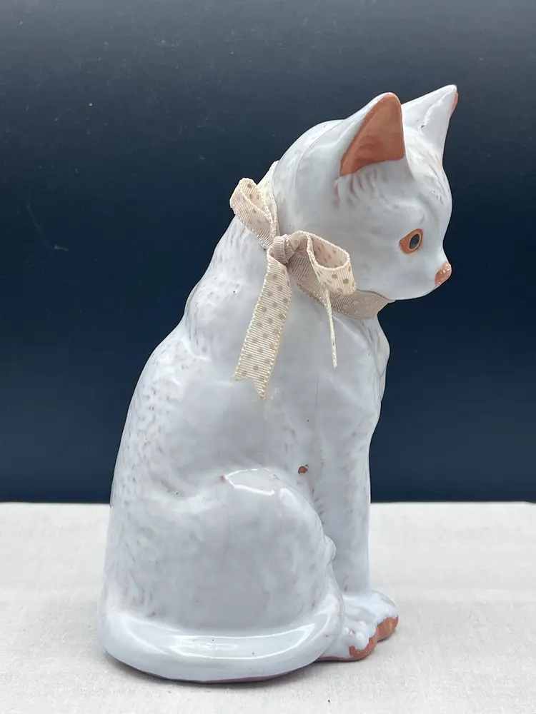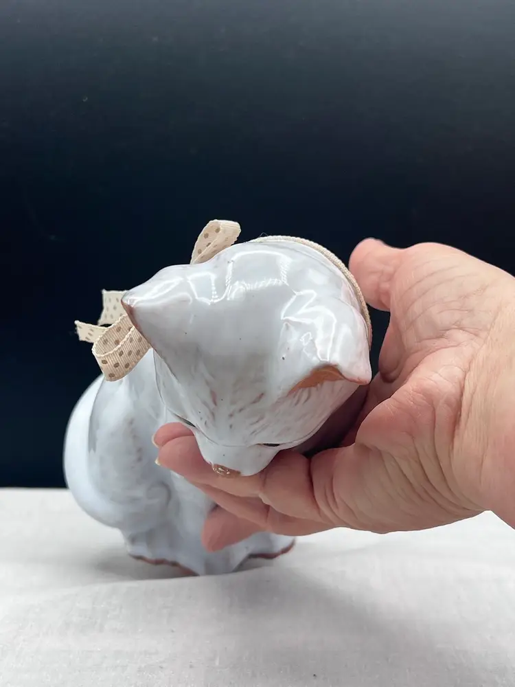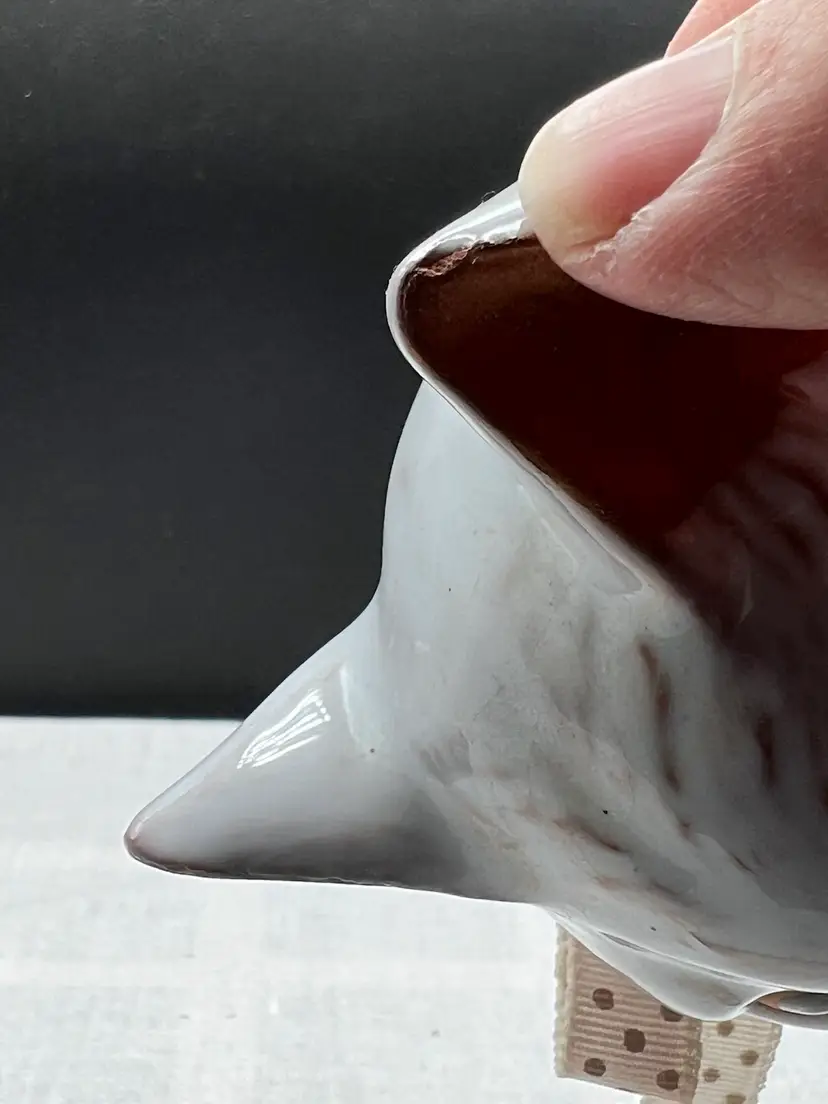 Adorable cat is not fully glazed, the redware is left unglazed on the ears, nose and eyes