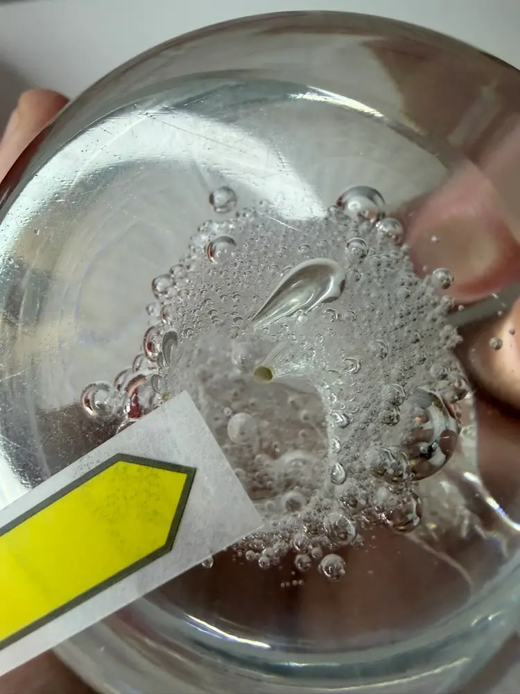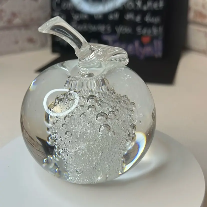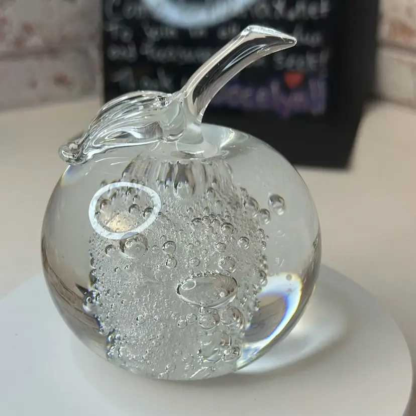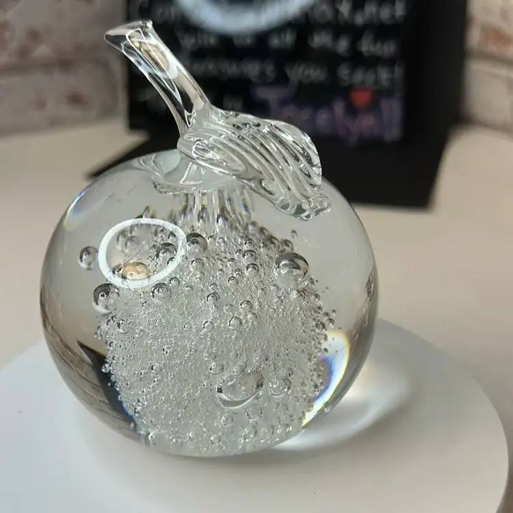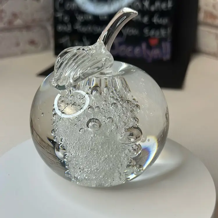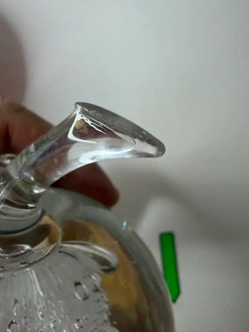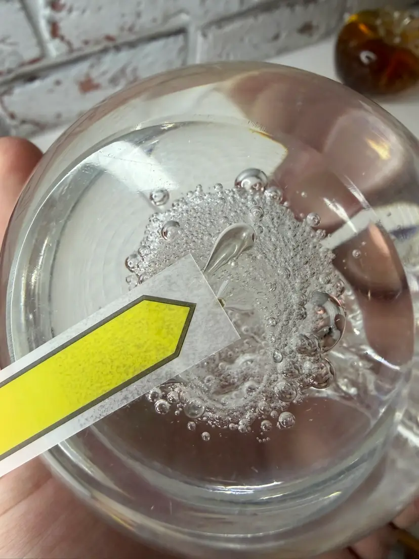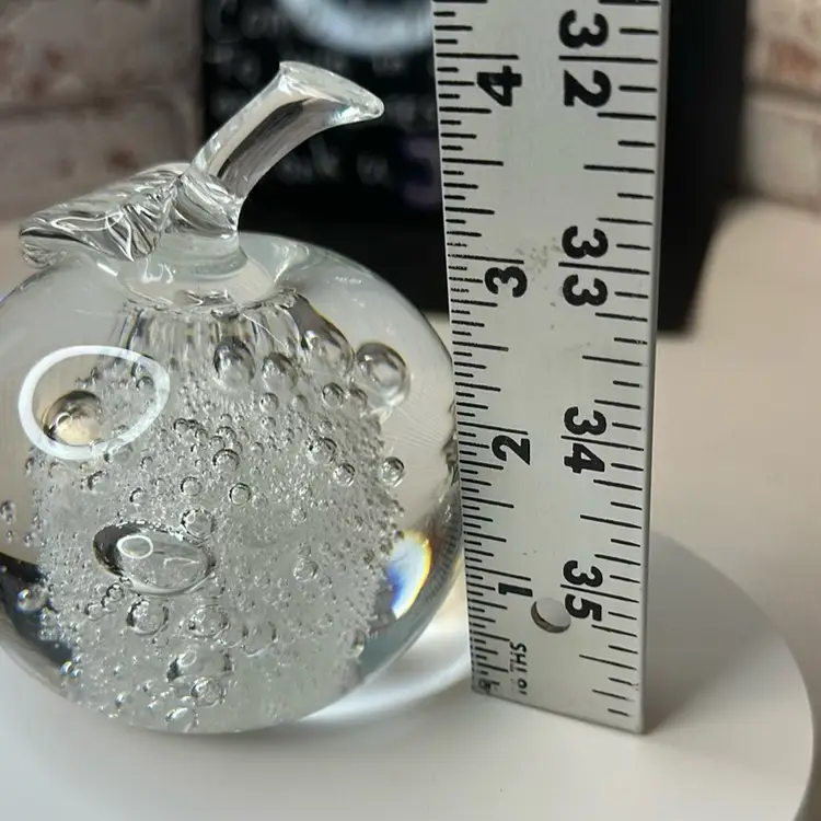 Measures 3.10” tall and there is one bubble on the button and that resulted in a chipped at the button of it