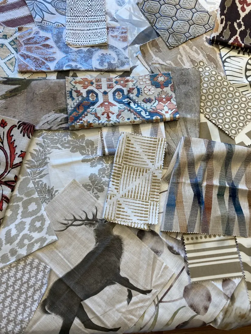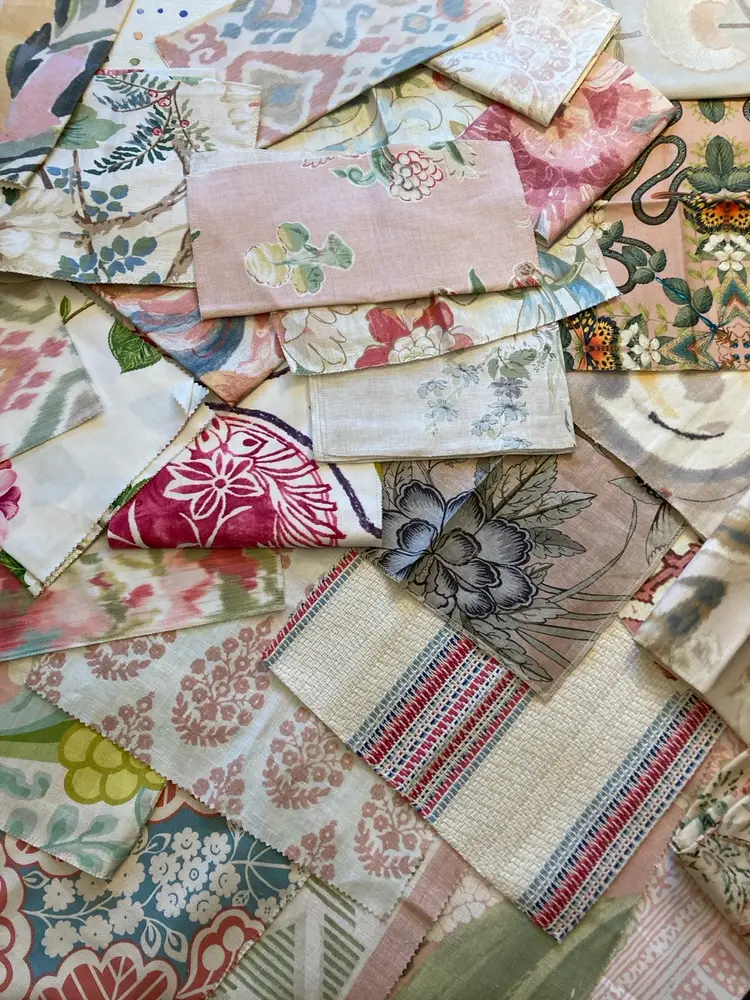 Upholstery and curtain fabric bundles of high-quality fabrics, ranging from cotton linens, silk tapestry, polyester, and more.
