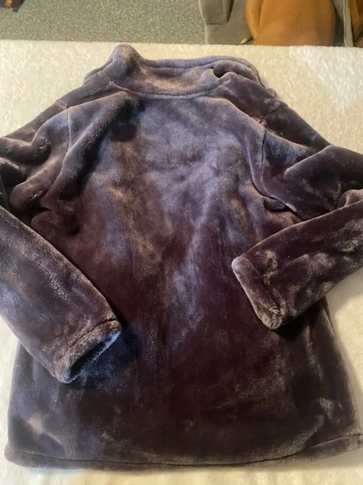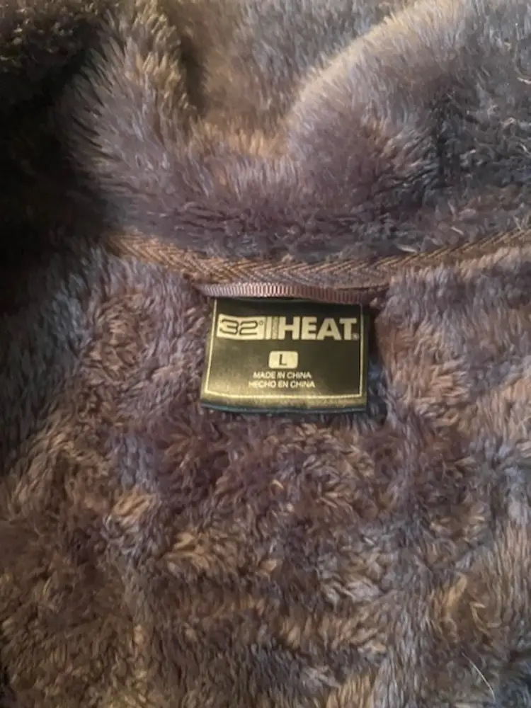 The 32 Degree Heat Women's Large Purple 100% Polyester Faux Fur Jacket is a stylish and cozy mid-length jacket perfect for casual occasions during the winter, fall, and spring seasons. Made from polyester with a fleece lining, this jacket features long sleeves, a full zip closure, and a solid purple color. The regular fit and size L make it a comfortable choice for everyday wear. With its high-quality construction and fashionable design, this jacket by 32 Degrees is a must-have for any woman's winter wardrobe. Length 26.5" Excellent Condition