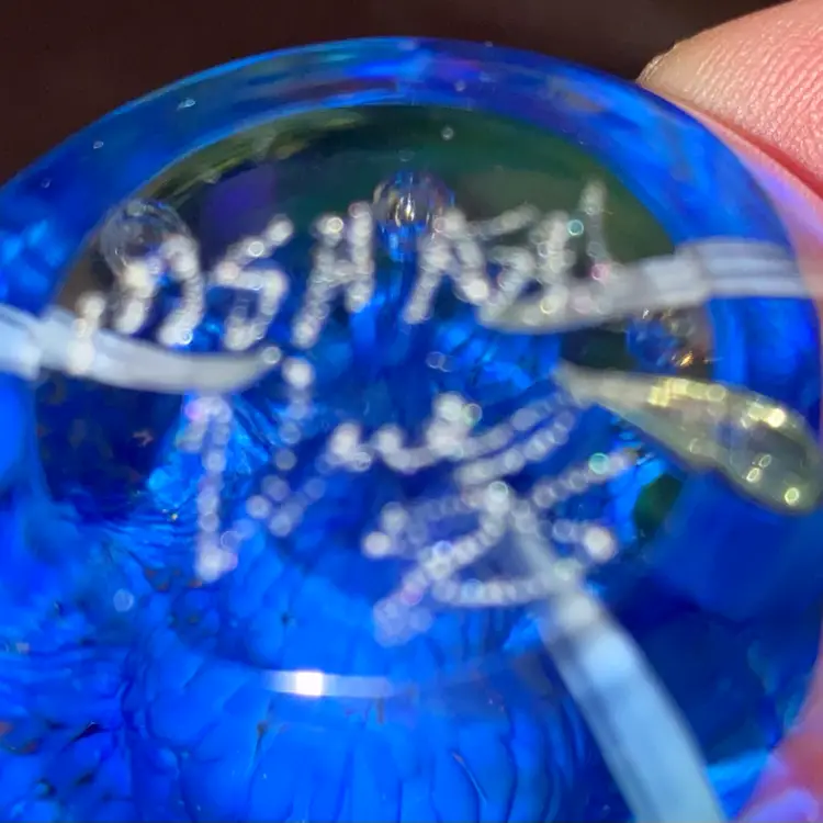 #32- Vintage Signed Art Glass Paperweight - Pinks 3"
