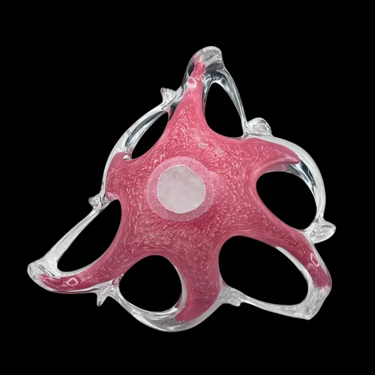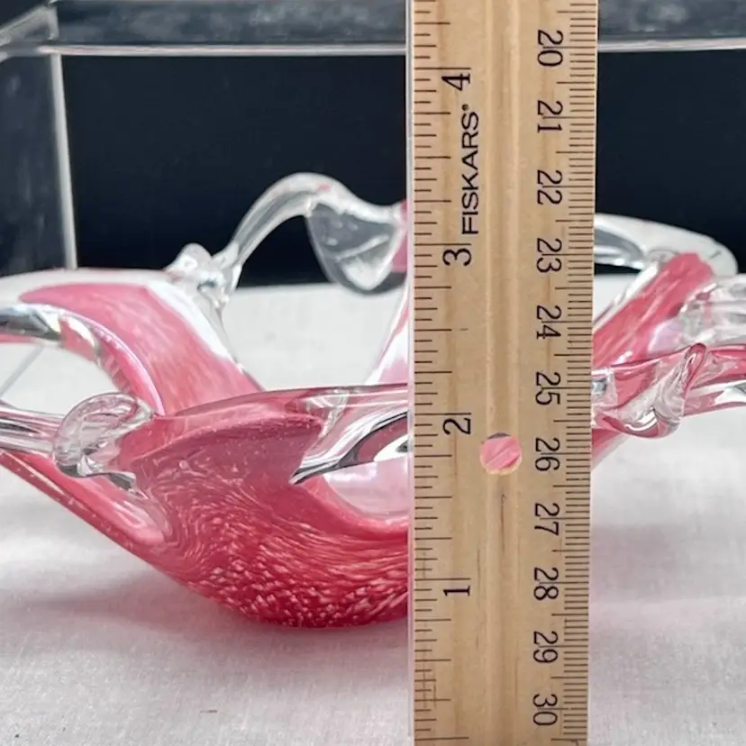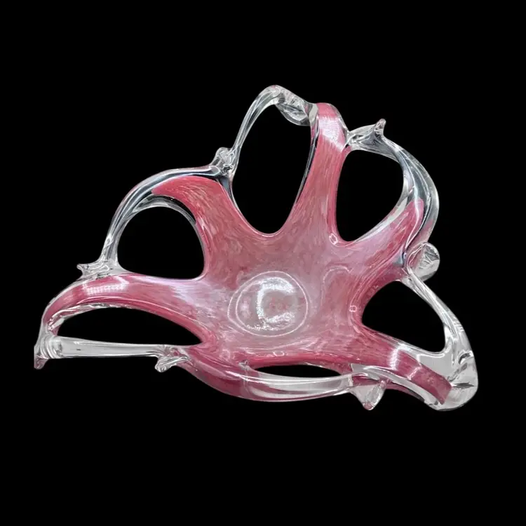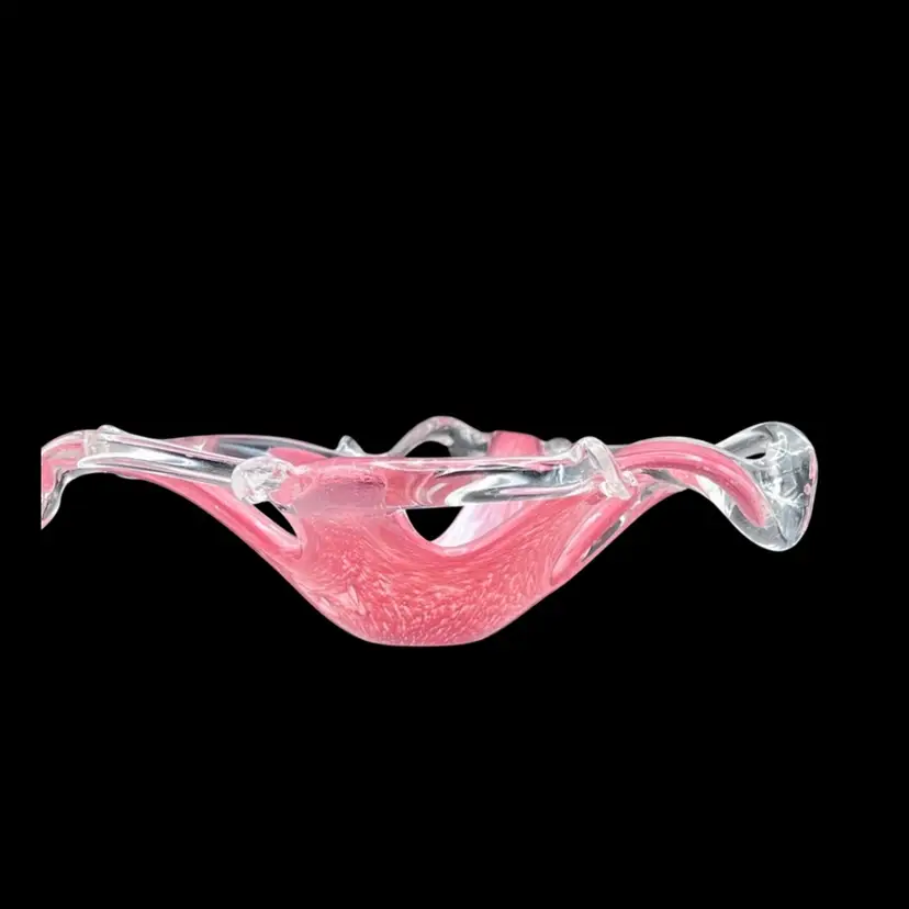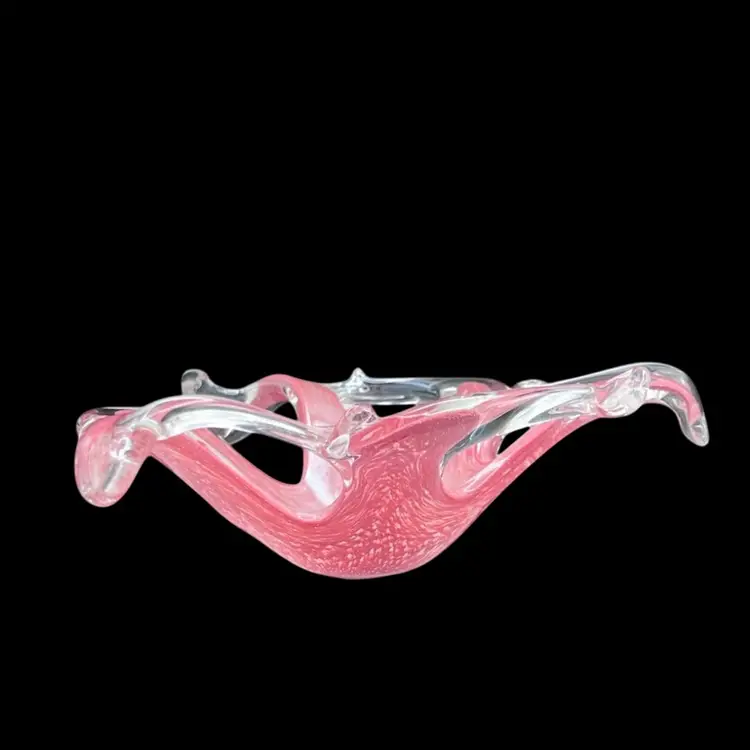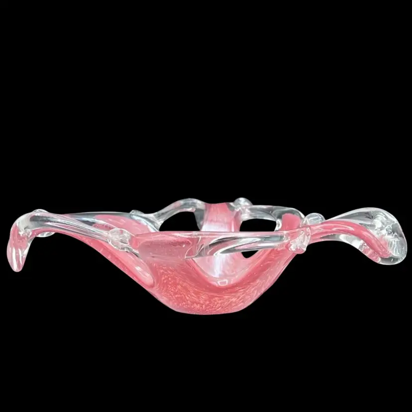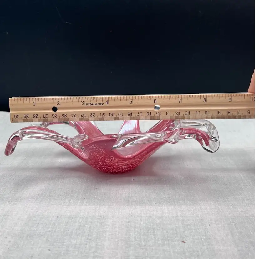 Beautiful Vintage Hand Blown Stretch Glass Splash Dish Pink/Clear Swirl Amethyst 6 Finger Bowl/Trinket Dish Piece is in very good vintage condition, no chips or cracks, there are a few minor surface scratches on bottom from age/use 2 1/4" tall x 8 1/2" wide