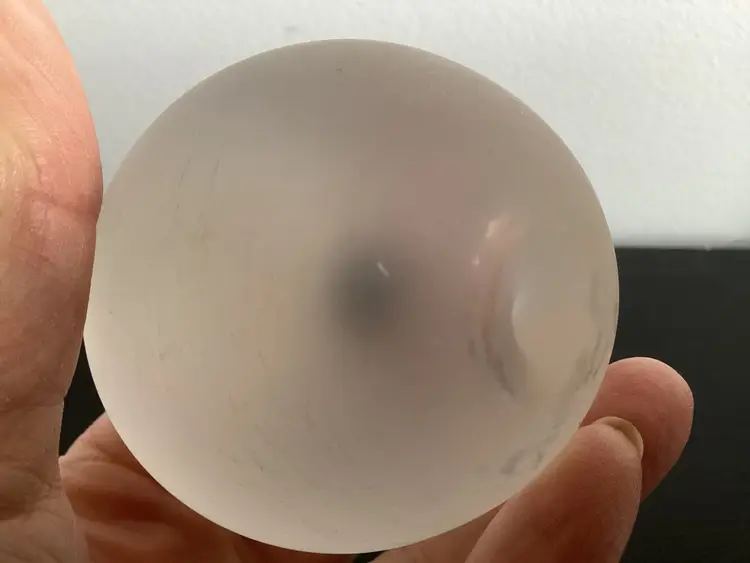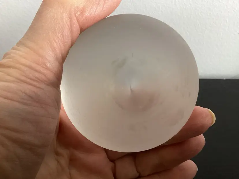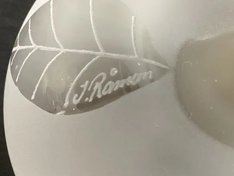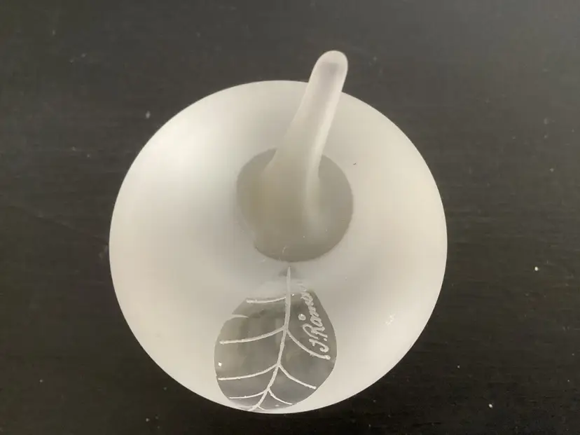 This item is a frosted glass apple sculpture created by Swedish artist Lena Bergström for Orrefors and signed 'L. Råman. There is one tiny scratch on the underside as shown otherwise in very good condition.