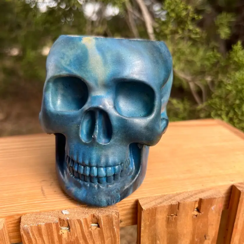 Hand poured concrete globe planter using various dyes for color. Drainage included.
