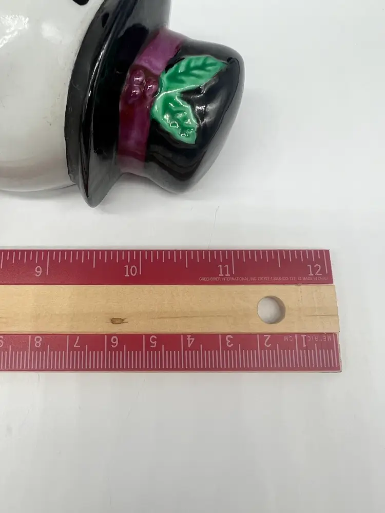 Great condition. No chips or cracks but on each side, on the rim, there are tiny “scuff marks” where it has rubbed against somethjng. Measure approximately 11” This guy is extremely heavy!