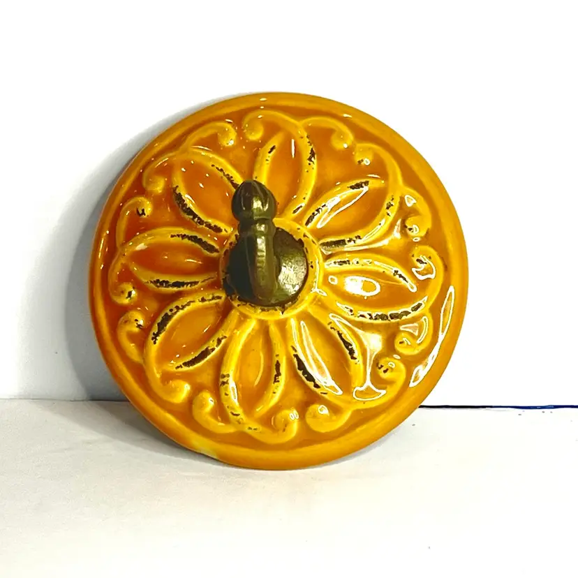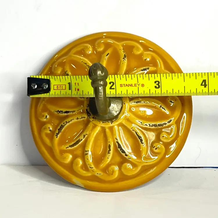 👉Metal Hook Sits Flush to Wall 👉Towel Bathroom Kitchen 👉 Yellow Gold Mustard Ceramic 👉No Chips or Cracks 👉Review Photos for Best Condition Description 👉Sold as Shown