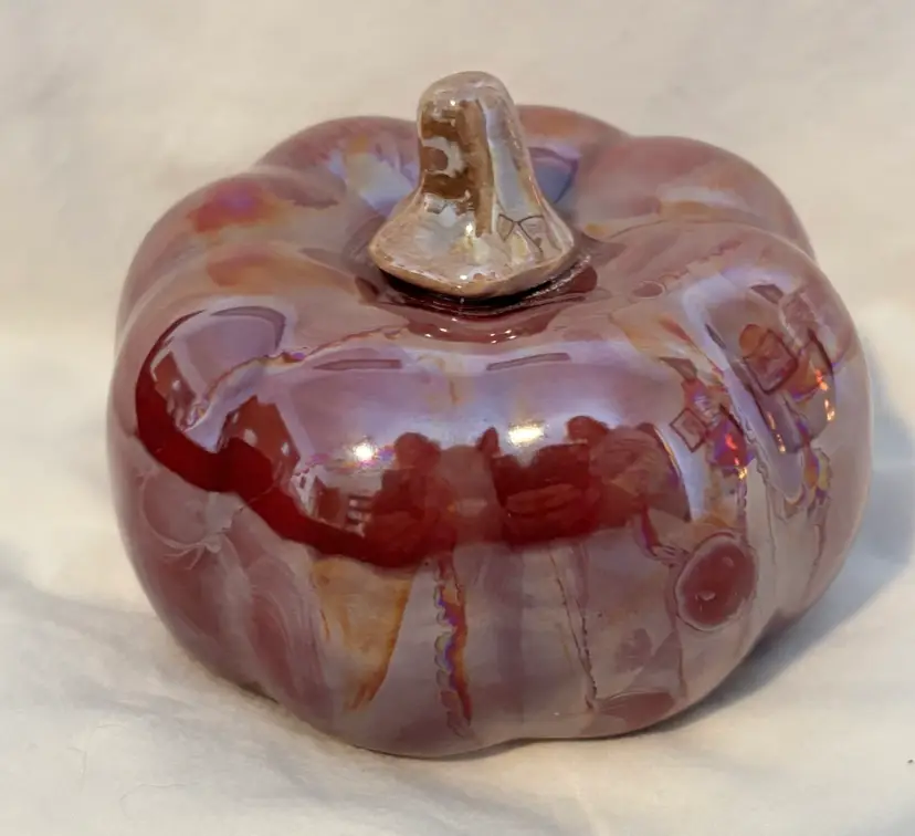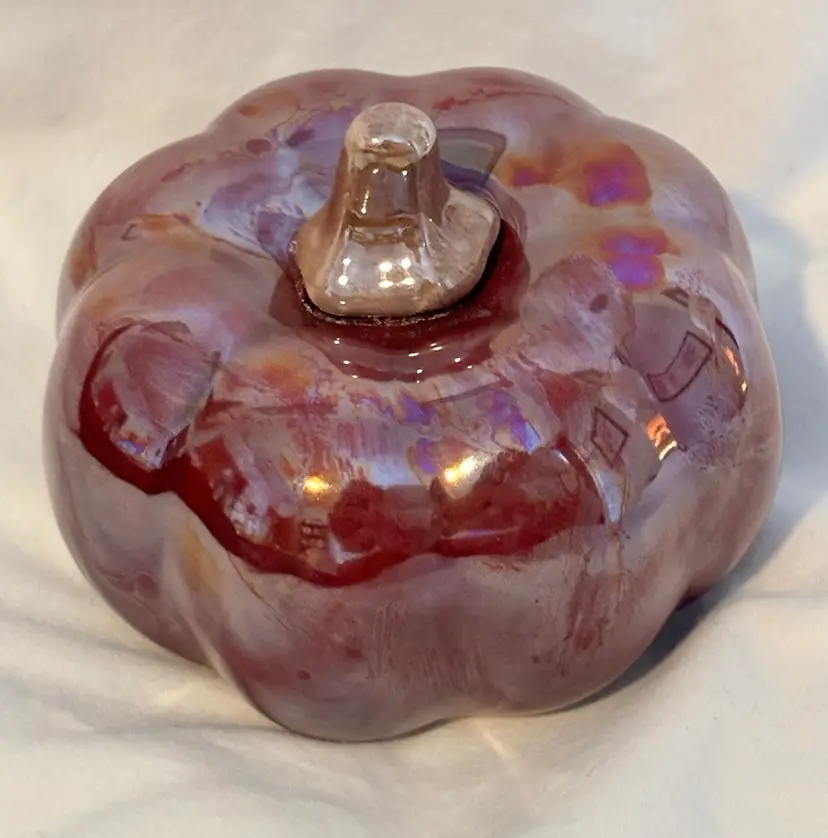 Very cute quality lusterware ceramic pumpkin, 3.5”w x 3”h
