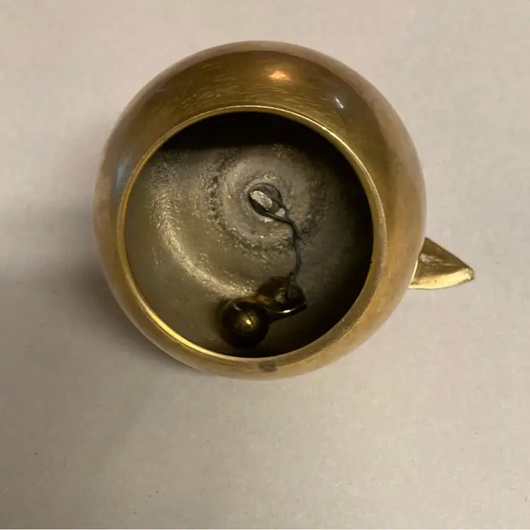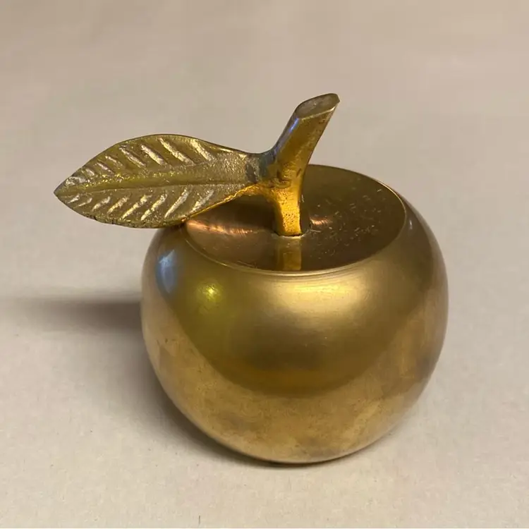 Brass apple bells became popular as decorative items and teacher's gifts in the mid-20th century. Their shiny appearance and pleasant ringing sound made them attractive desk accessories. They often served as paperweights or simply as ornamental objects.