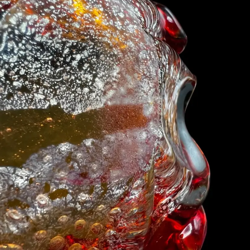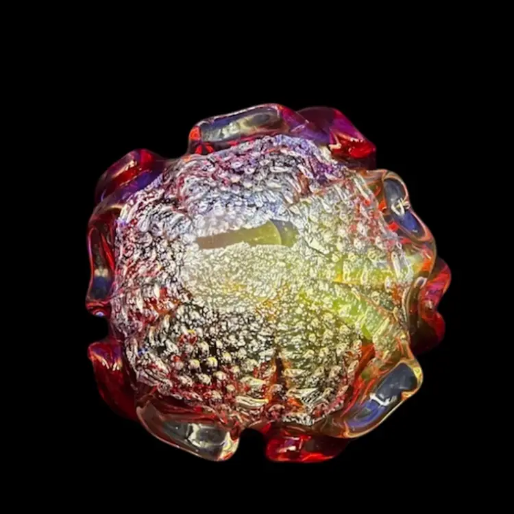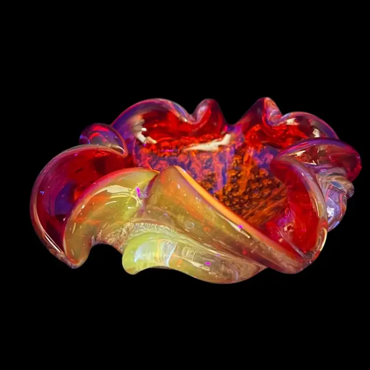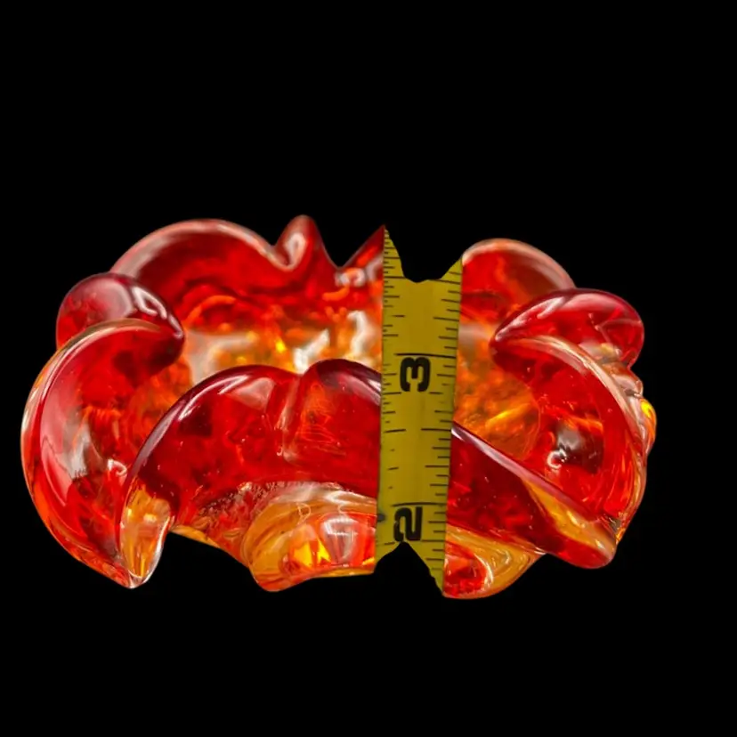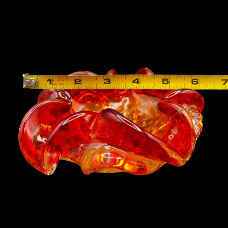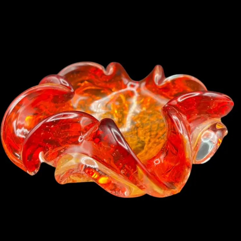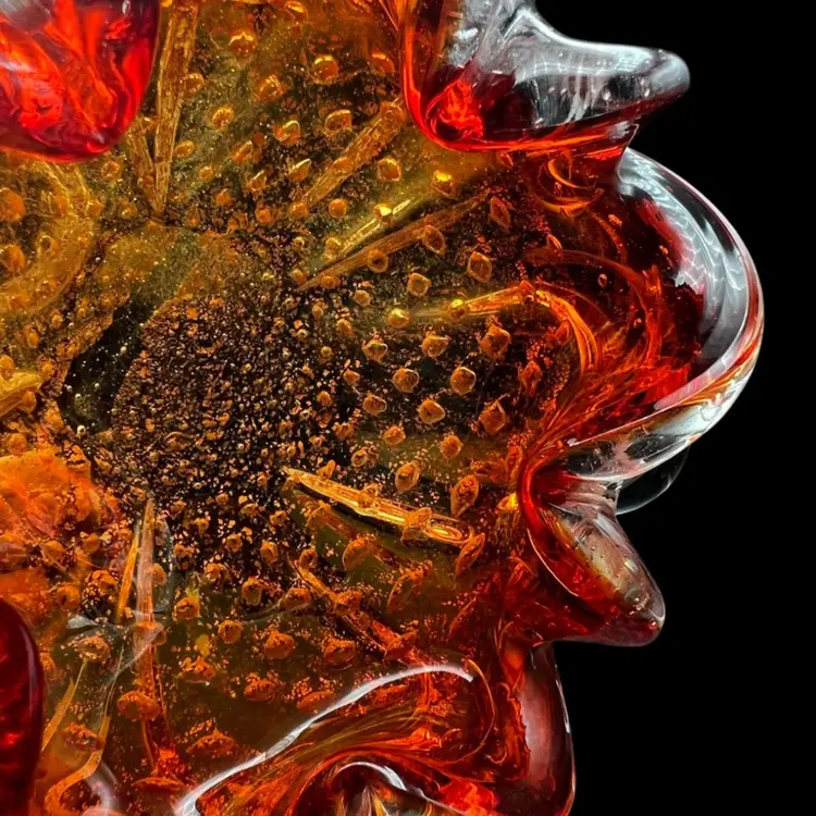 Stunning Vintage MCM Orange With Controlled Bubbles Art Glass Murano Ashtray/Bowl In excellent condition, no chips or cracks. Stands about 3” x 6 1/2” in diameter.