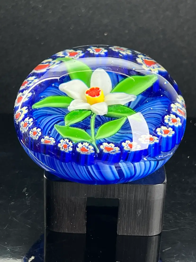 A nice contemporary Chinese flower paperweight in a large magnum 4” size.