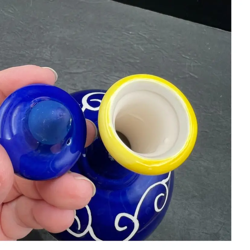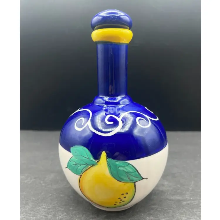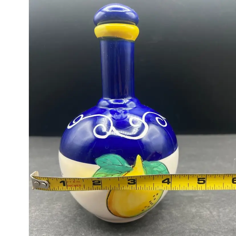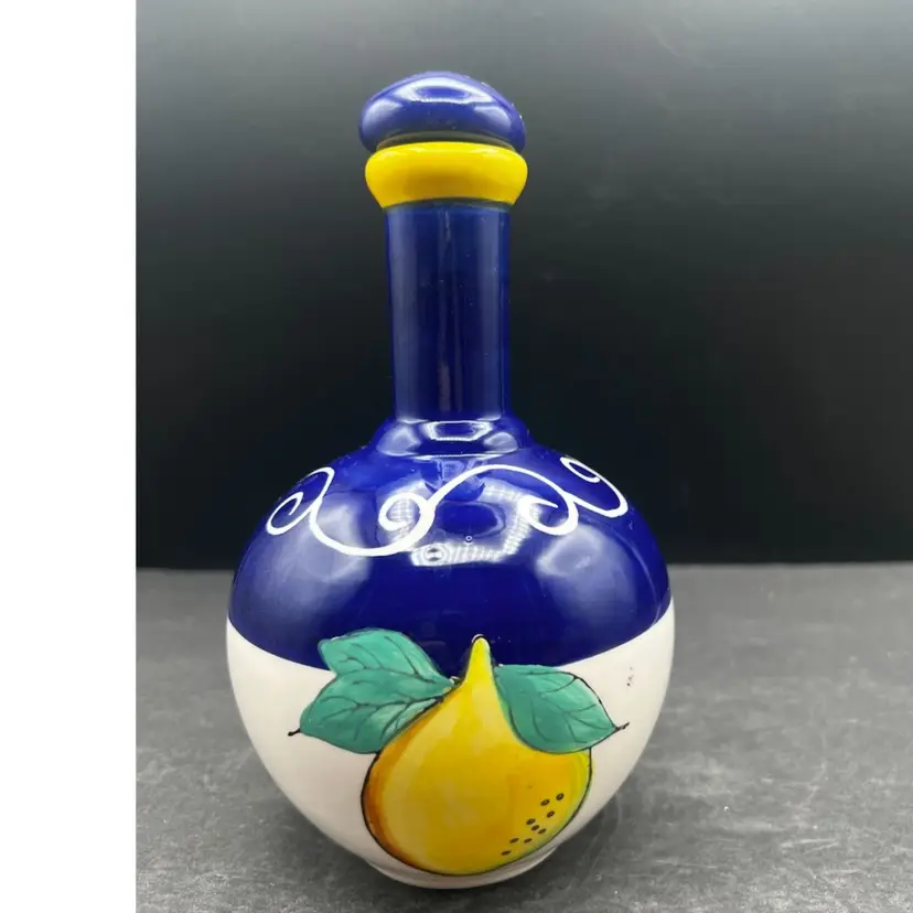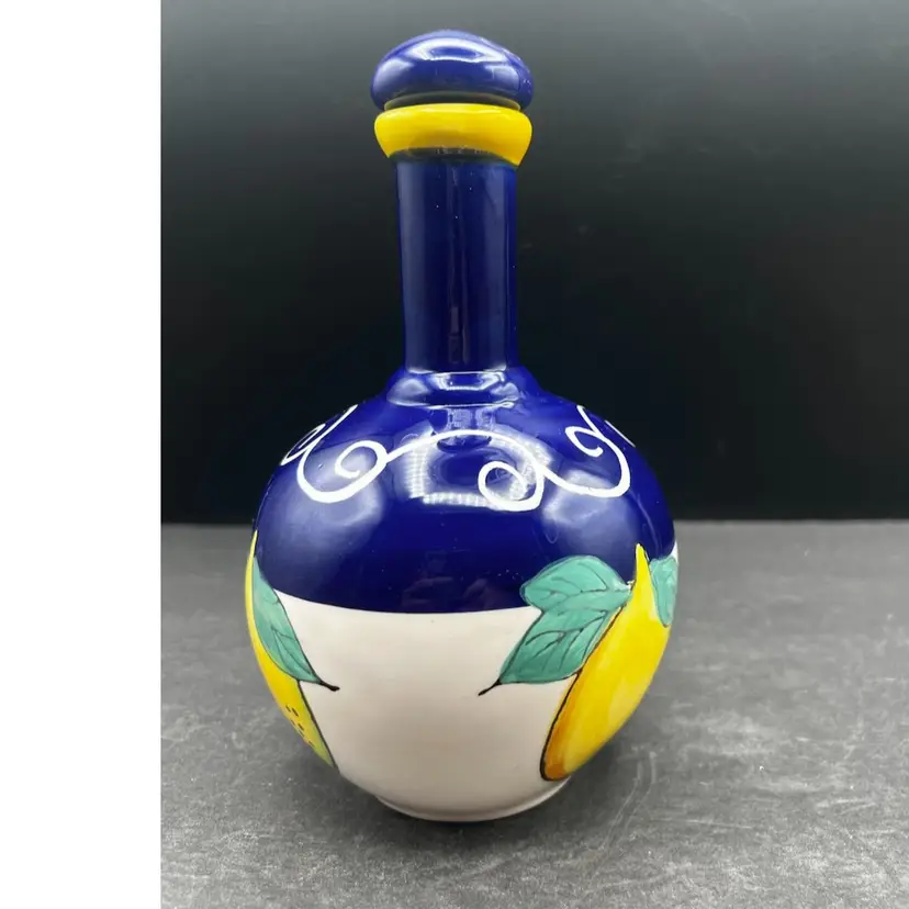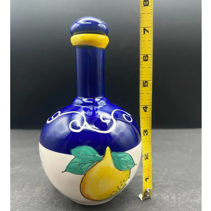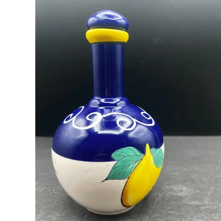 Vintage Hand Painted Pottery Decanter With Stopper. Danny DeVito’s Premium Limoncello Bottle/Decanter In very good condition. No chips or cracks but starting to craze. See pictures 7 1/2” tall x 4 1/4” in diameter