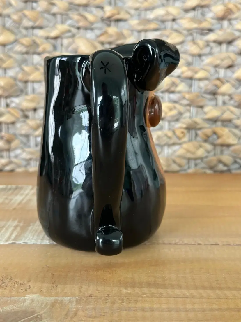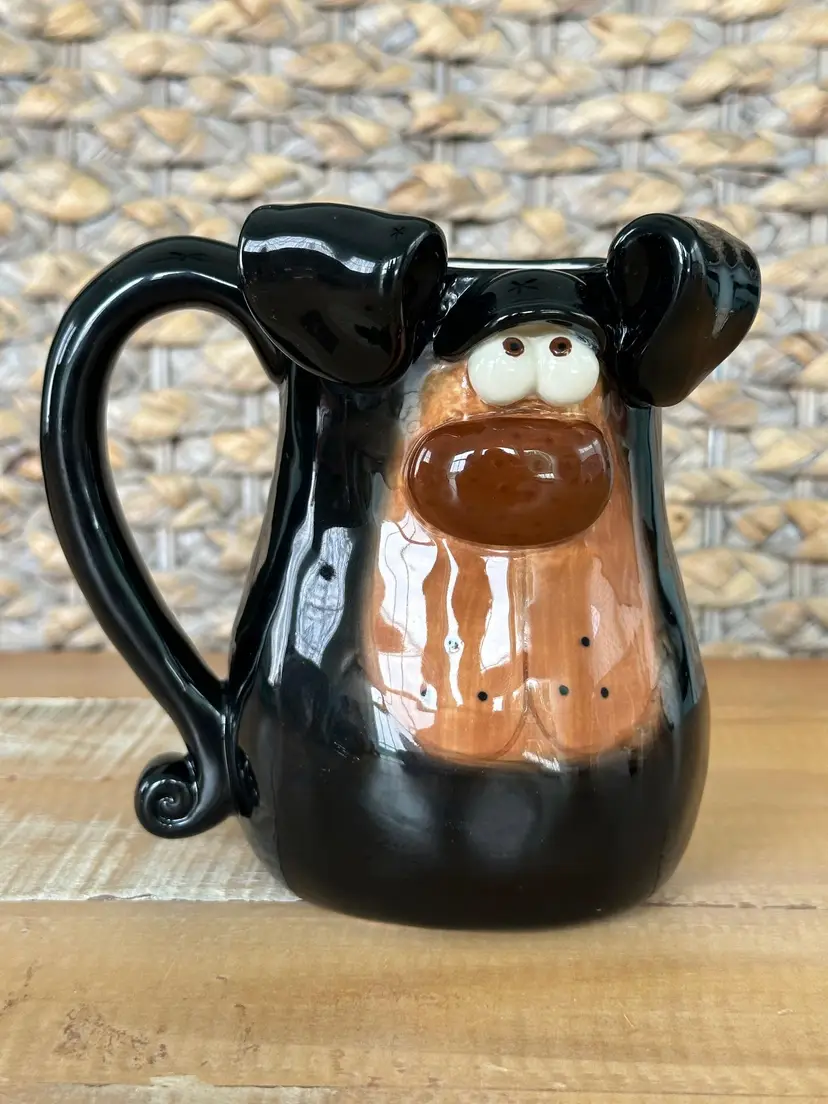 Add a touch of whimsy to your morning routine with this quirky black dog ceramic mug. Featuring a playful dog design with floppy ears, this mug is perfect for dog lovers and collectors alike. Ideal for coffee, tea, or hot chocolate. W: 5.5" L: 3.5" H: 5"