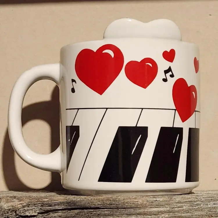 CUTE VINTAGE MUG for your sweet love, favorite musician, pianist or Jan & Dean fan! Standard size coffee cup for 80's era.