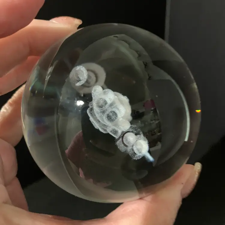 This is really neat! Comes with the color changing base. No chips or cracks. Measures 3 inches wide. Weighs 23 ounces. If the actual postage ends up being less than what you paid, you will be refunded for anything over one dollar.