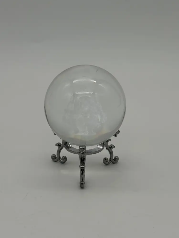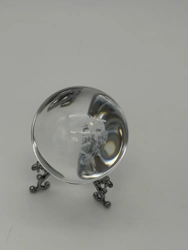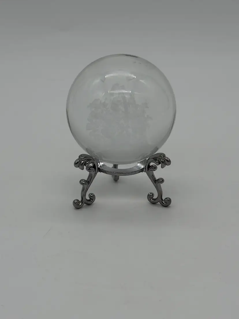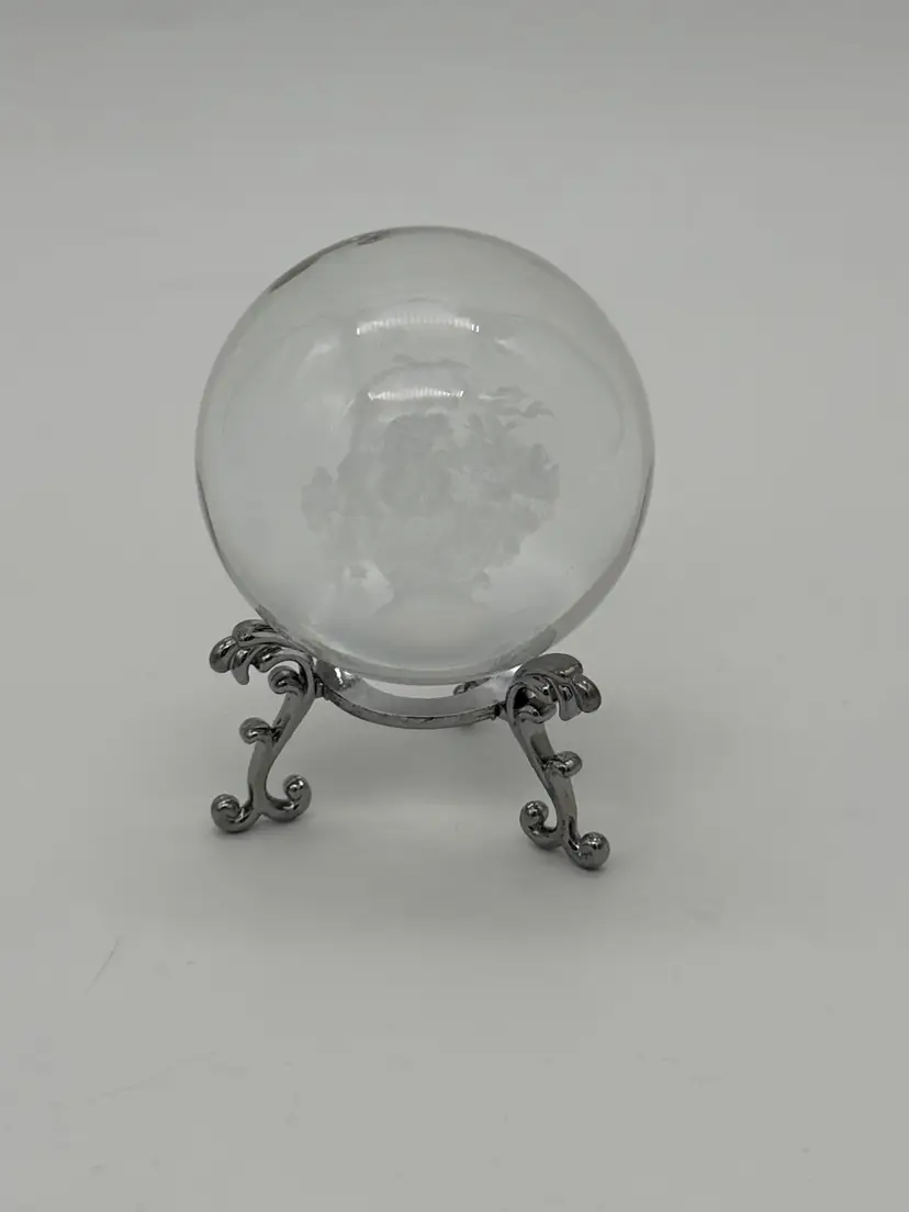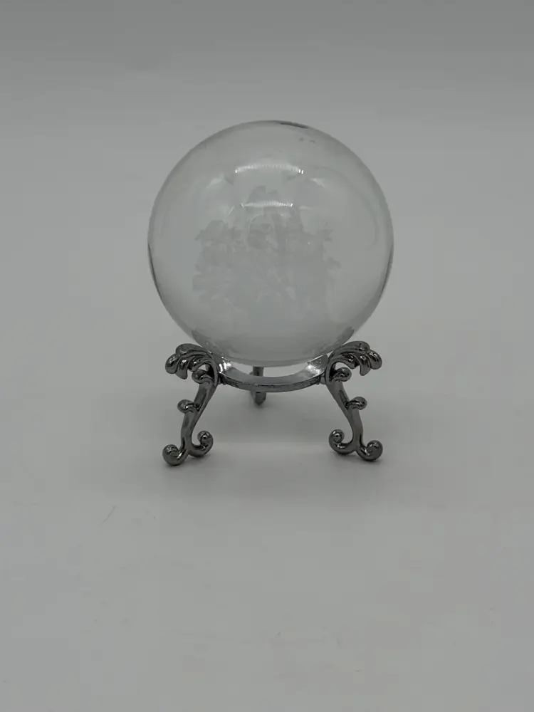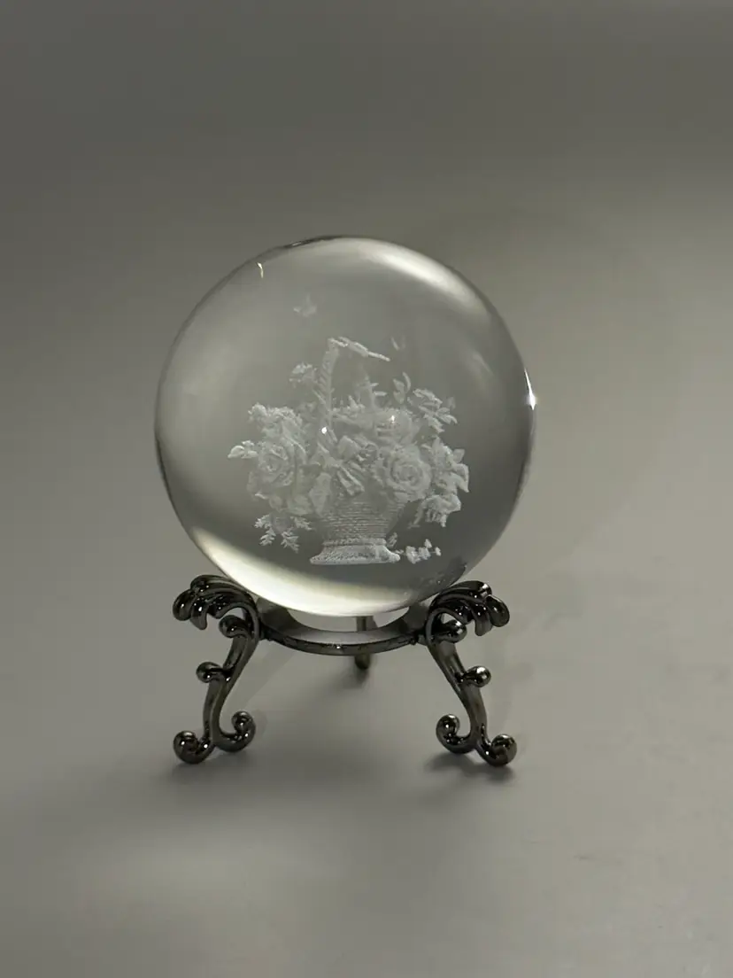 This 3D Laser Engraved Butterfly Rose Basket Crystal Ball is a stunning decorative piece with a small size and a clear, frosted pattern. The intricate design features a basket of roses with floating butterflies, creating a beautiful and artistic display. The crystal ball sits on a silver tone metal stand, adding an elegant touch to any room. Handmade with a 3D laser production technique, this original piece is perfect for all occasions and can be enjoyed by teens and adults alike. With a shiny finish and a theme centered around flowers, butterflies, and art, this crystal ball brings a unique and stylish element to any space.