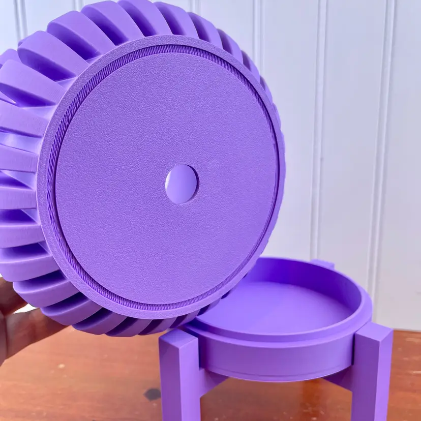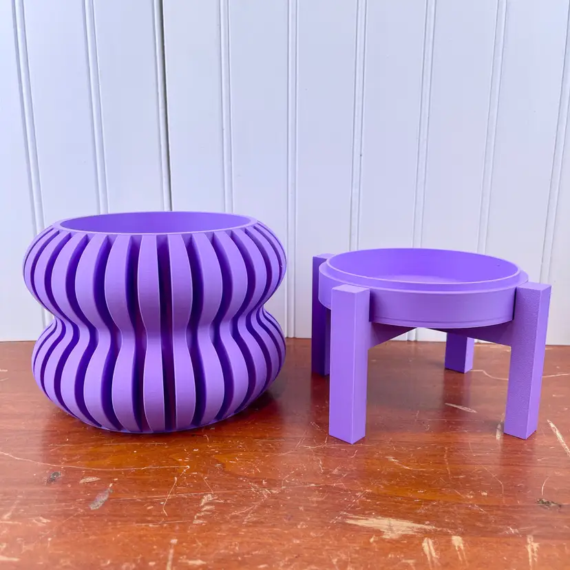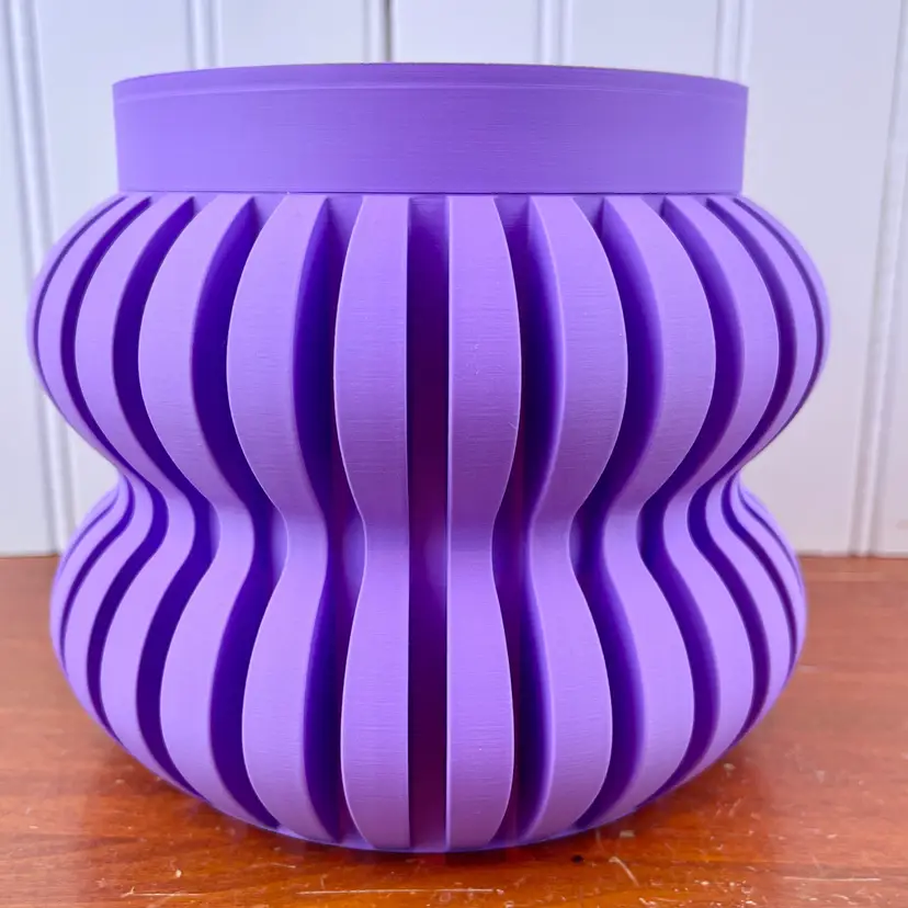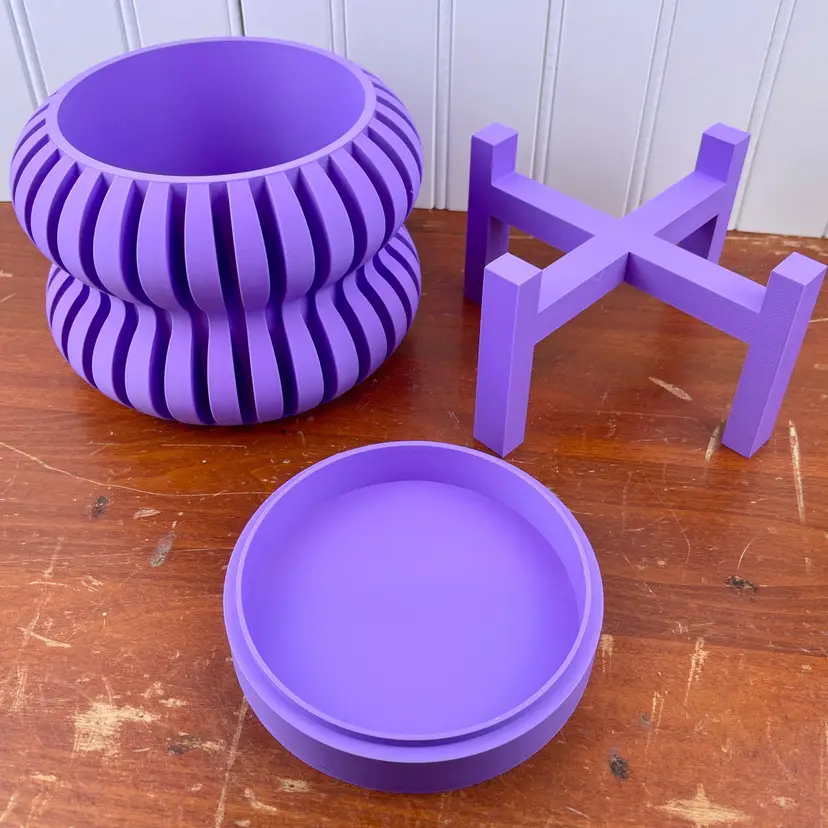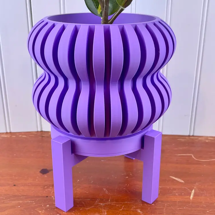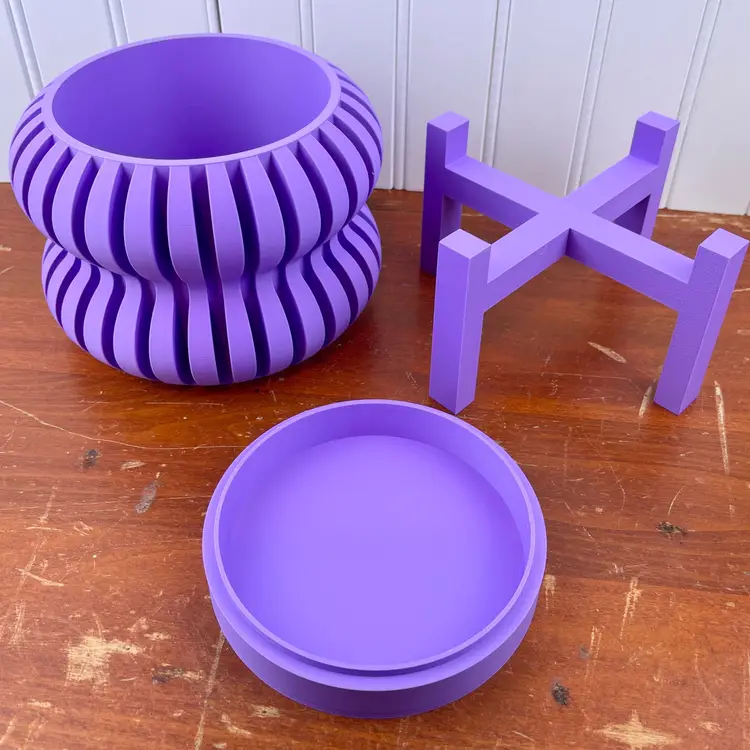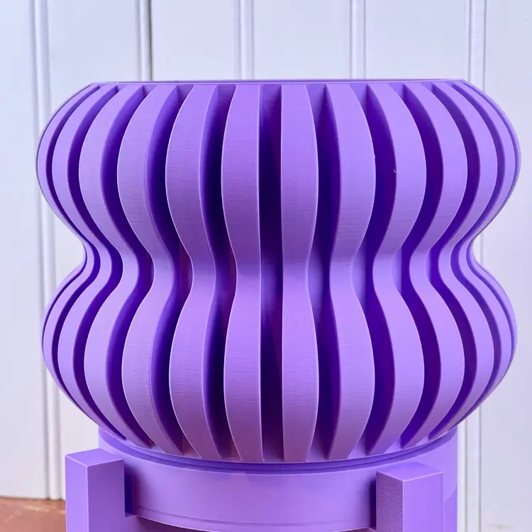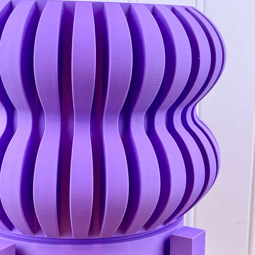 The planter is 3D printed using eco-friendly, biodegradable PLA plastic filament. 3D printing is done by printing layer upon layer of filament to build up and create the print.