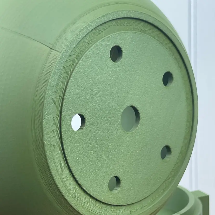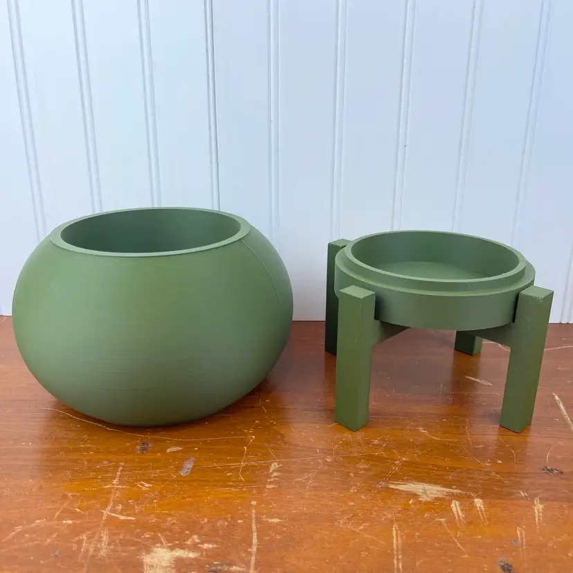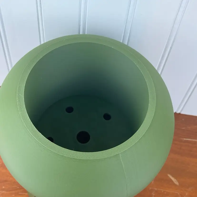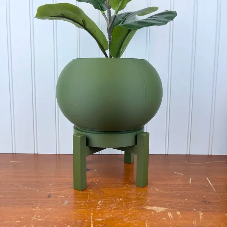 The planter is 3D printed using eco-friendly, biodegradable PLA plastic filament. 3D printing is done by printing layer upon layer of filament to build up and create the print.