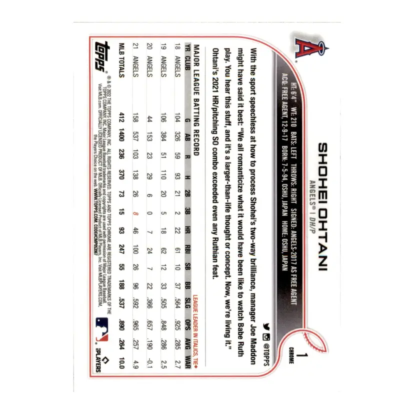 2022 Topps Chrome Shohei Ohtani #1 Los Angeles Angels. Ships PWE. Check out my other listings! Thanks