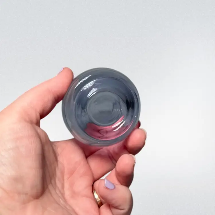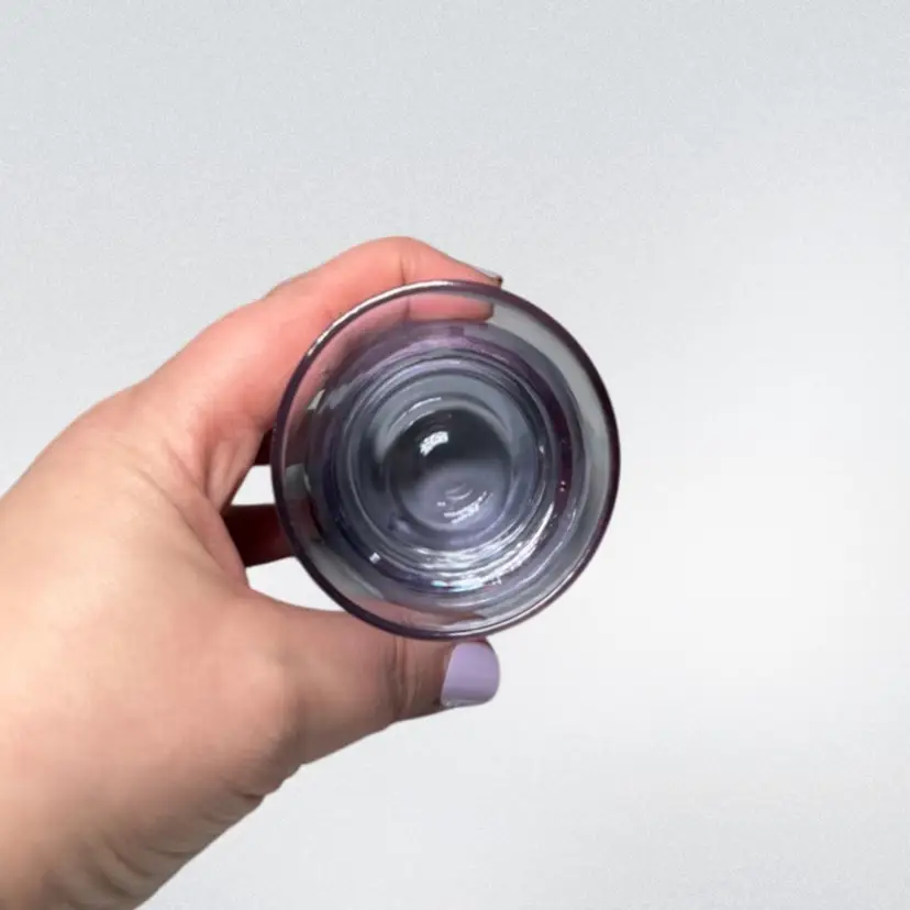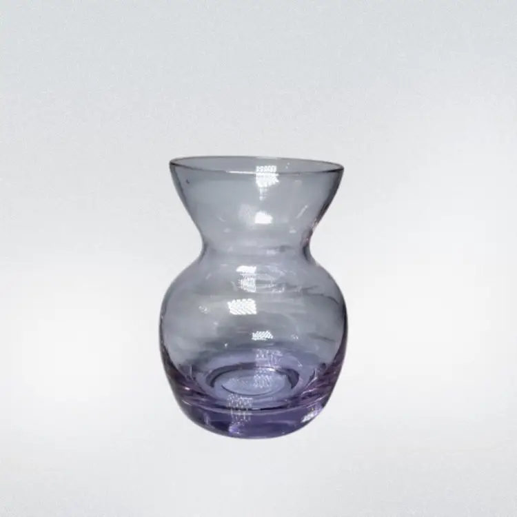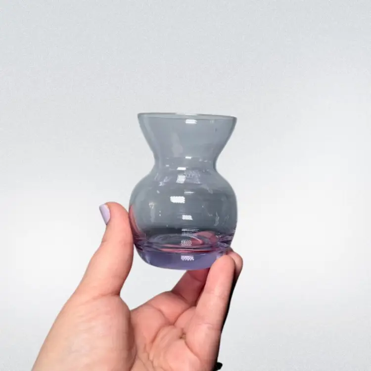 Super cute 3in tall neodymium glass bud vase. Maker unknown. Changes from purple to light blue under florescent lighting. No chips or cracks.