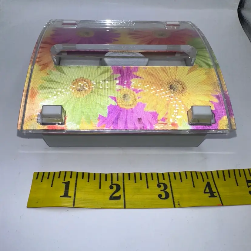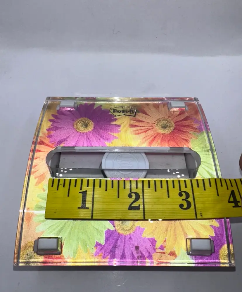 EXCellent Used Condition 3M Post It Note Pop Up Dispenser Daisy Floral Clear Acrylic. Holds 3 x 3 Square Fan Fold/Pop Up Post It Notes. Base Is Heavy To Stay In Place When Dispensing Note. Floral Display Is Removable If Desires. Smoke Free Home. #postit #postitnotes #notedispenser #office #homeoffice