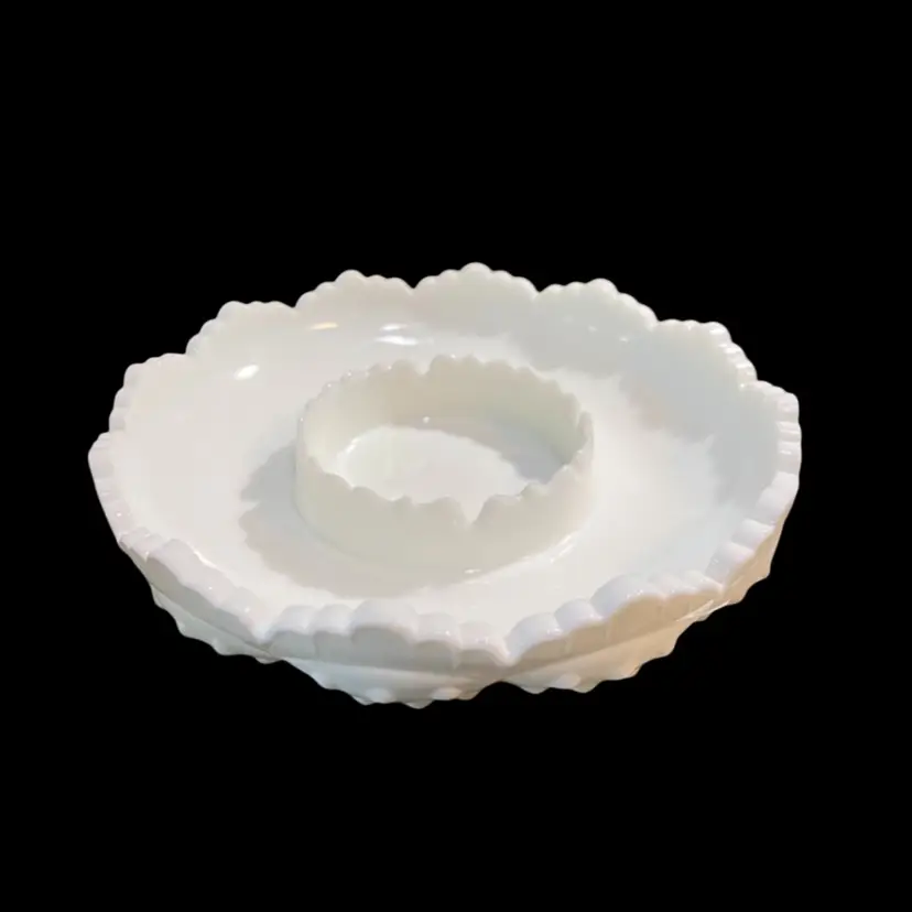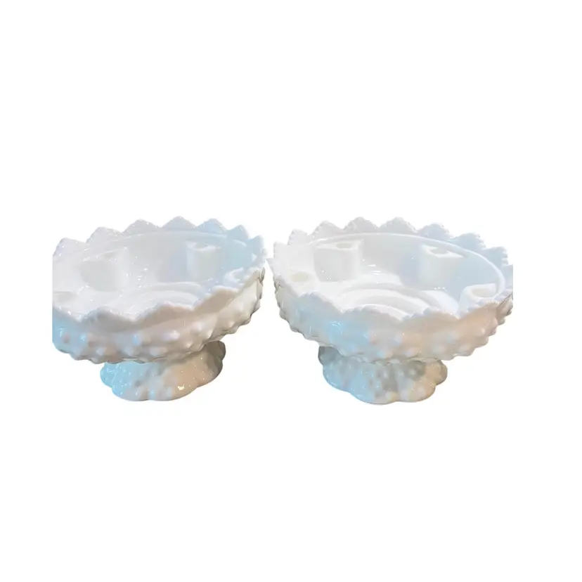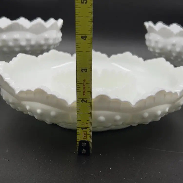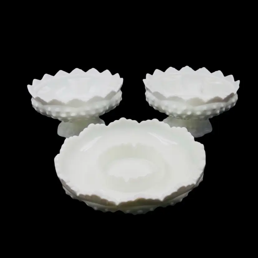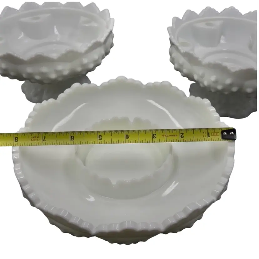 👉 Milk Glass Hobnail Scalloped Edges 👉(1)#3778 8x2.5” Footed Center Piece Candle Holder Chip and Dip Snack Candy Nut Dish Ashtray 👉(2)#3872 6.75x3.5”Footed Multiple Candle Holder Snack Candy Nut Dish 👉No Chips or Cracks 👉Review Photos for Best Condition Description 👉Sold as Shown This Set Does NOT Include Progressive Shipping