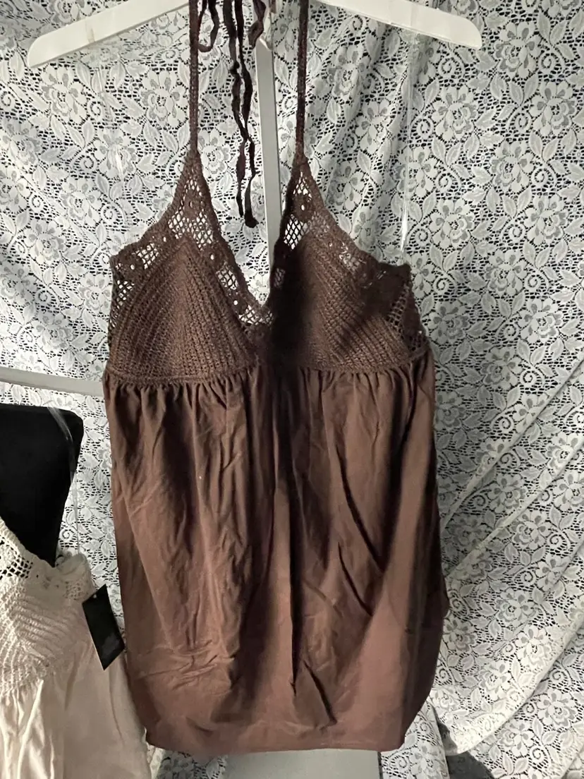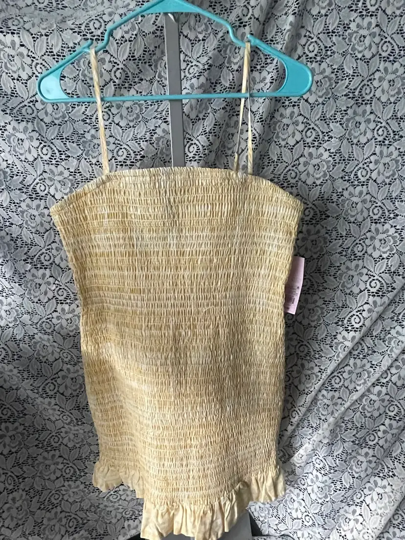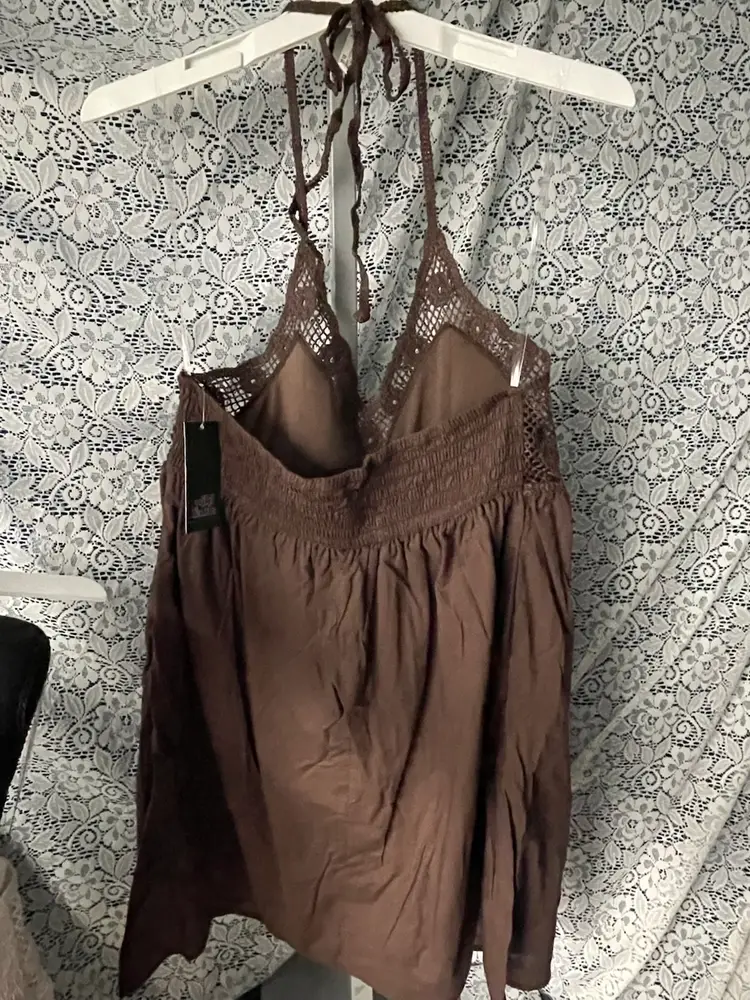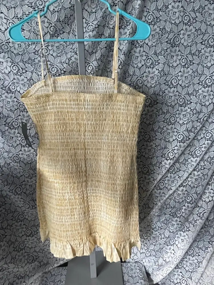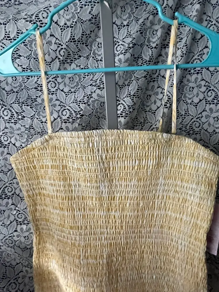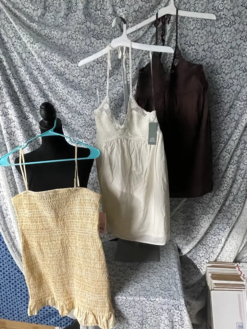 Three great spring/summer dresses two are halter with a crochet style top and the yellow/white dress is a form fit with stretch and spaghetti straps.