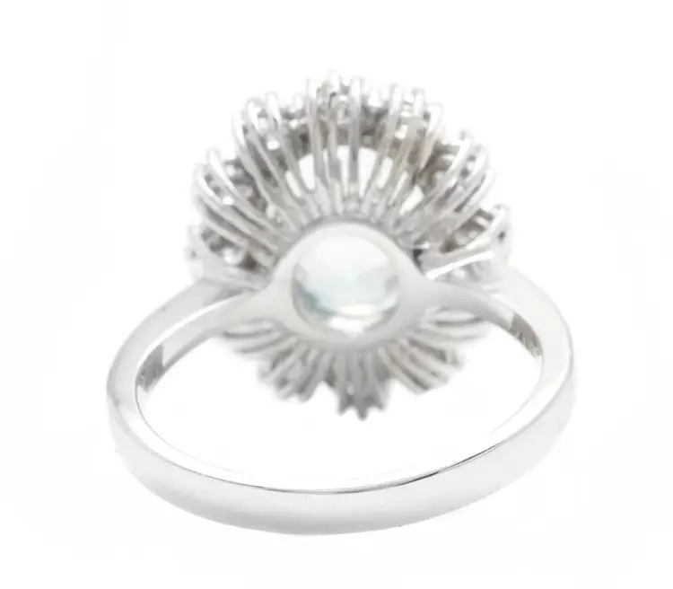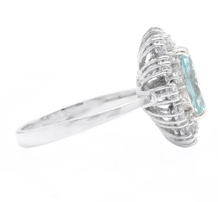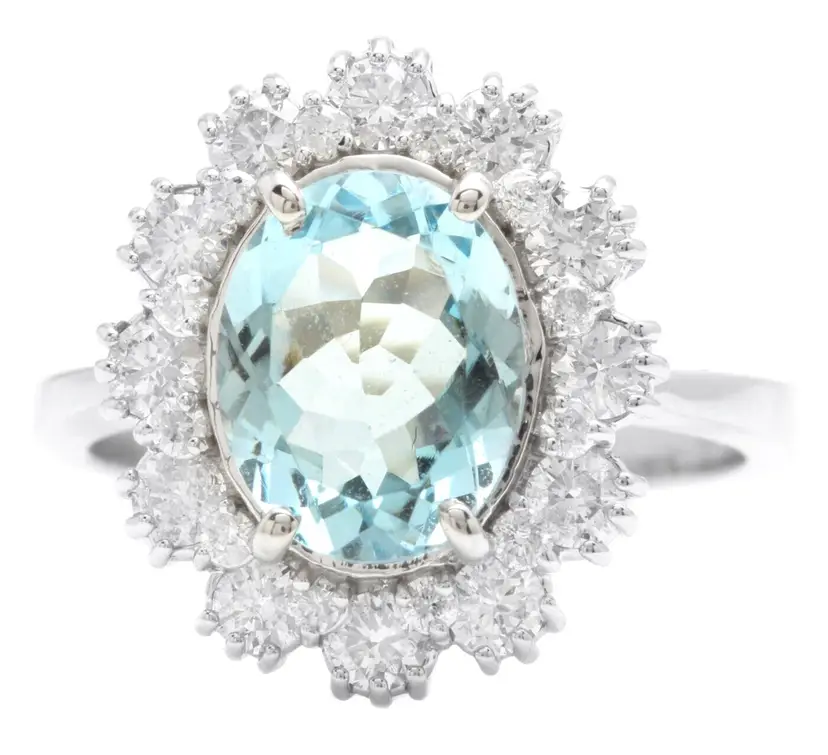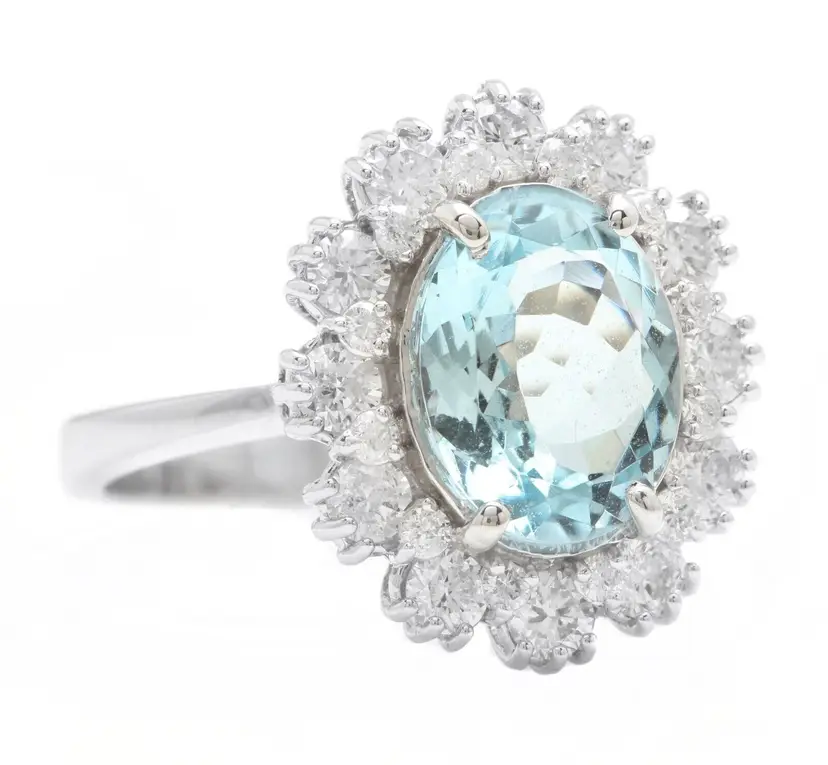 Main Stone Creation: Natural Sizable: Yes Main Stone Color: Light Blue Metal: White Gold Main Stone: Aquamarine Ring Size: 6.5 Brand: Unbranded Main Stone Treatment: Heating Type: Ring Metal Purity: 14k solid gold Main Stone Shape: Oval Total Carat Weight (TCW): 4.00 Country/Region of Manufacture: United States