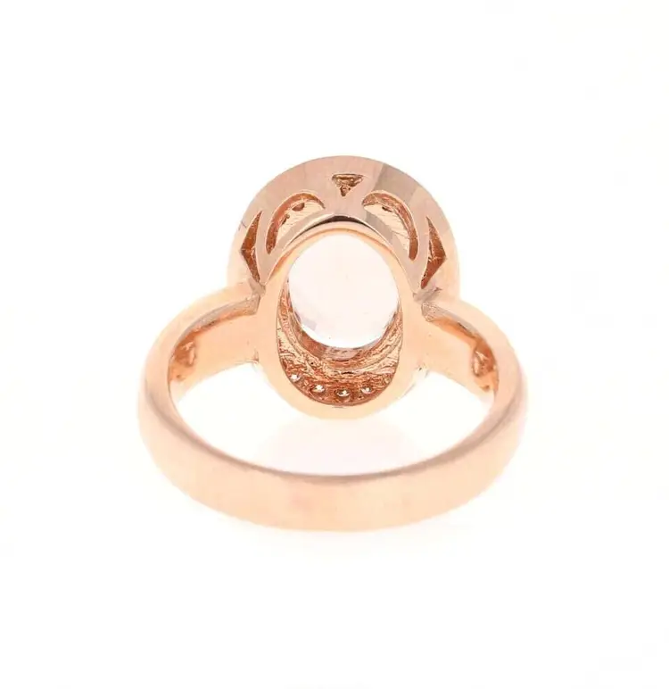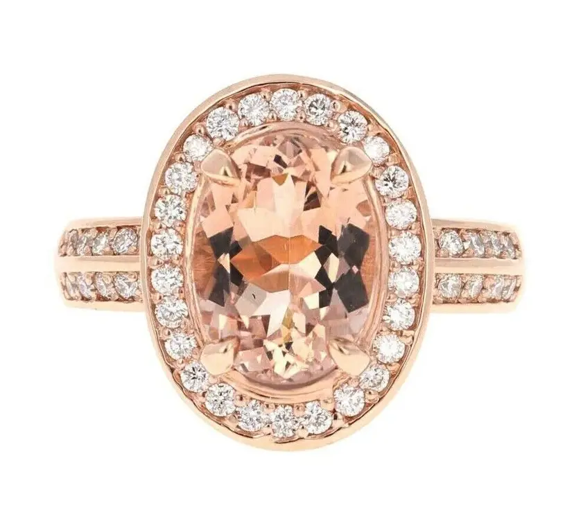 Modified Item: No Main Stone Color: Peach Main Stone Treatment: Heating Metal Purity: 14k Main Stone: Morganite Sizable: Yes Main Stone Creation: Natural Metal: Rose Gold Ring Size: 6 Total Carat Weight (TCW): 4.10 Main Stone Shape: Oval Brand: Unbranded Type: Ring