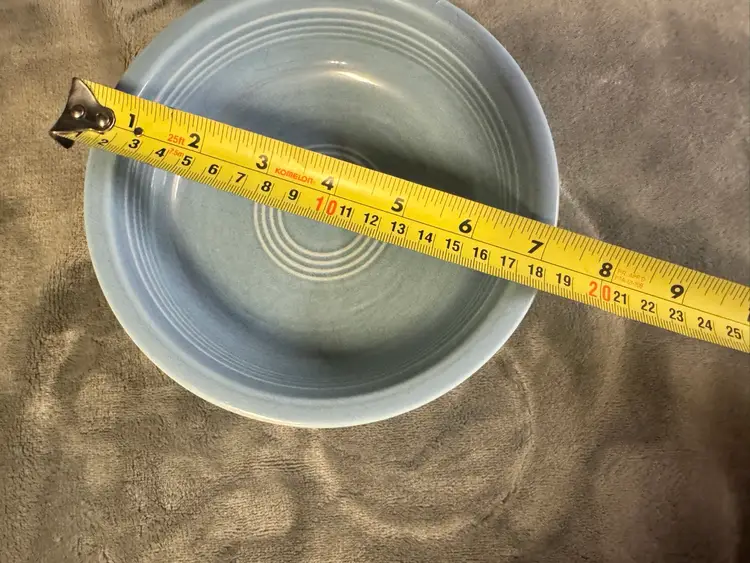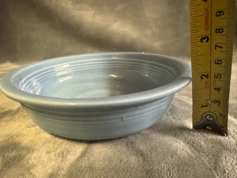 4 available. Please see my other listings for more matching items. The product is a vintage Fiesta Fiestaware periwinkle blue 7” cereal soup bowl by Homer Laughlin. It is an original piece from the late 20th century, featuring a glossy finish and an impressed backstamp. Made of ceramic using pottery production technique, this round bowl is dishwasher safe and suitable for all occasions. The vibrant blue color and Fiesta product line make it a charming addition to any adult's dinnerware collection. Fair condition. No chips, cracks, or crazing. There is quite a bit of utensil marking consistent with heavy use (see photos).