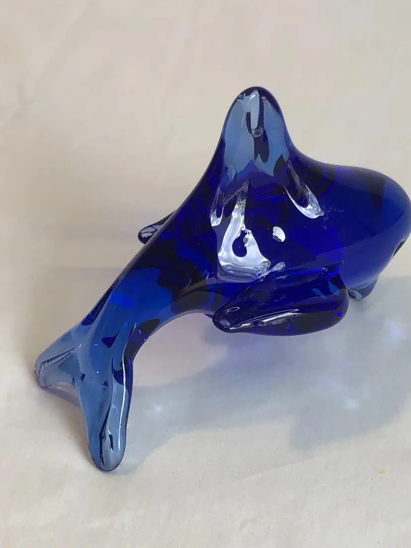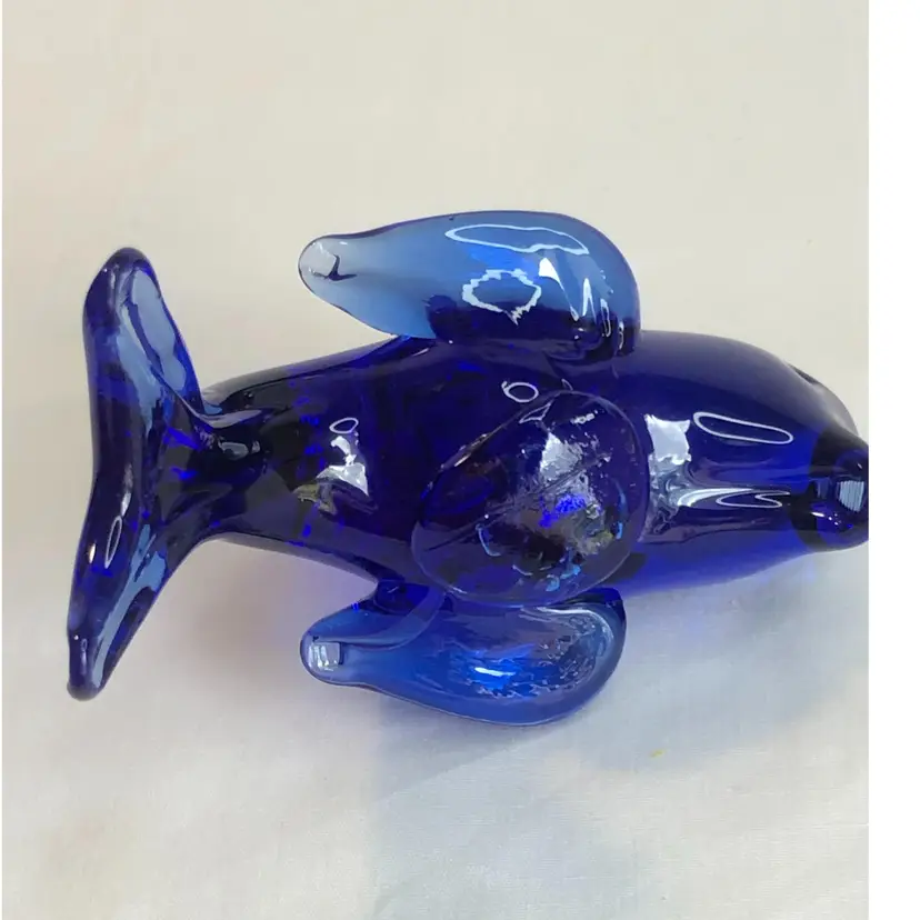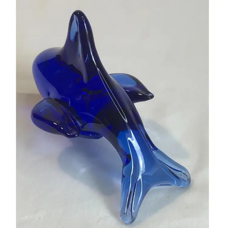 4" long Cobalt Blue Studio Art Glass Jumping Dolphin Figurine Paperweight Handblown. No chips, on cracks.