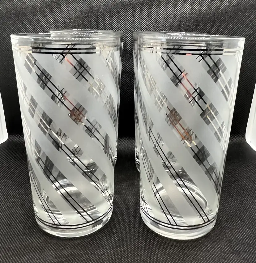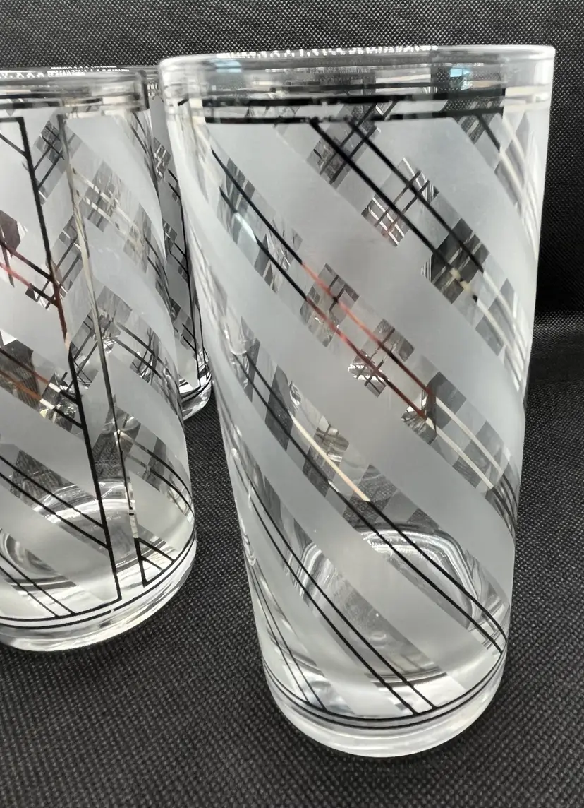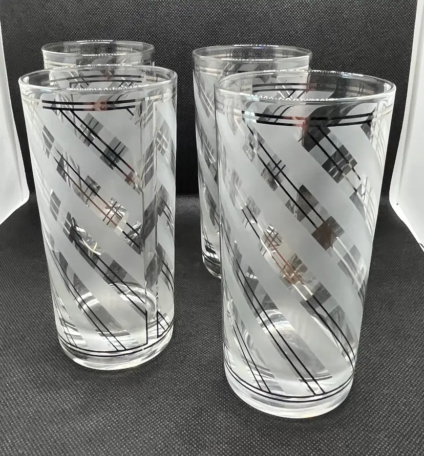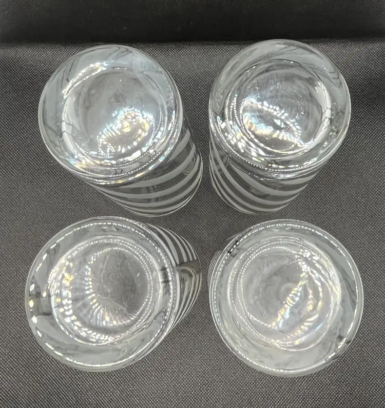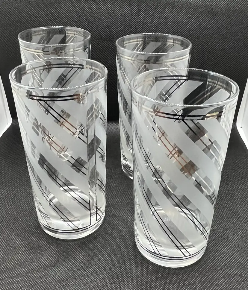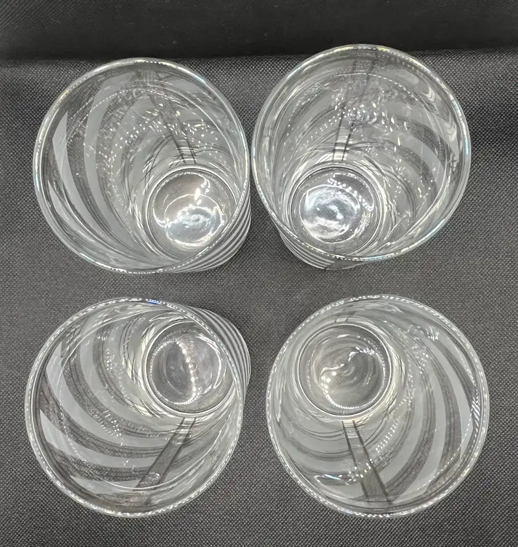 4 Culver Spiral Silver Stripe Clear Glass Highball Tumblers Water Glasses 12 oz.. Minimal surface wear with no chips or cracks.