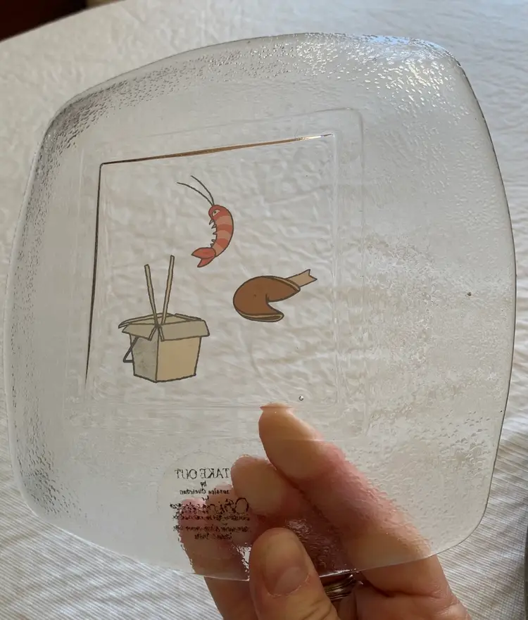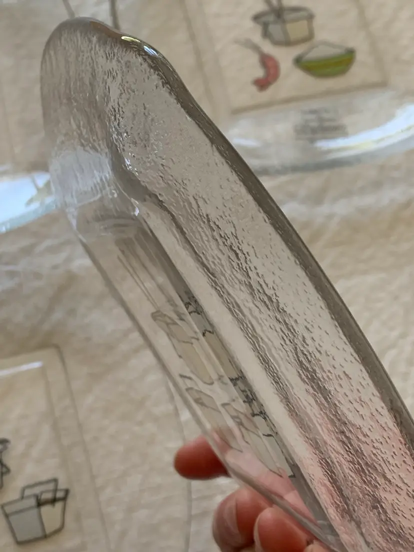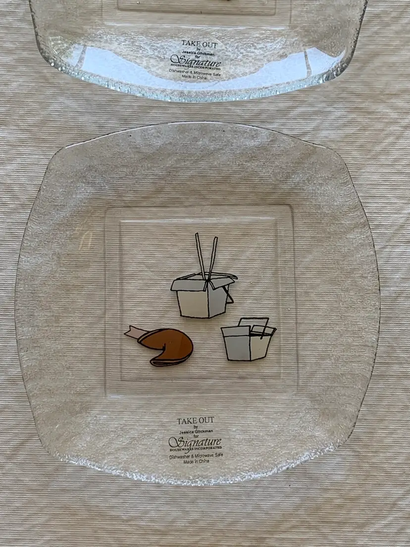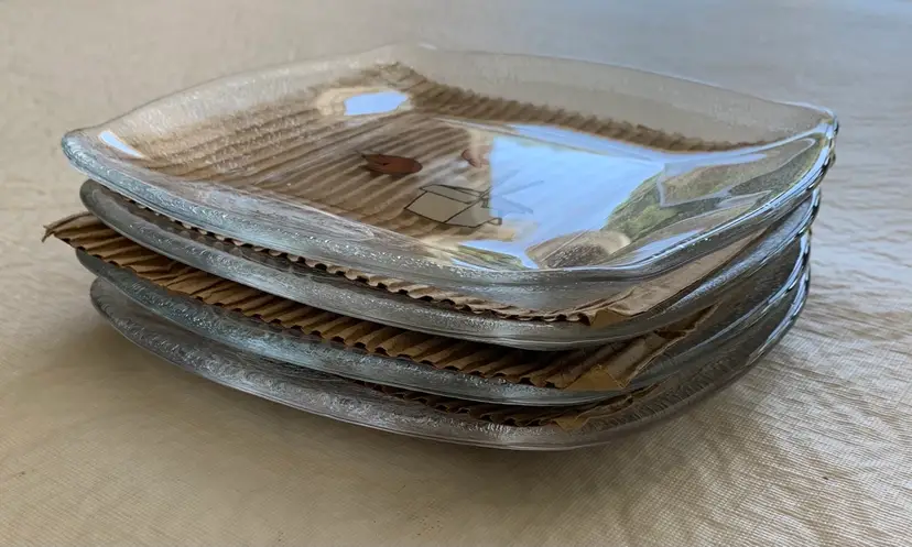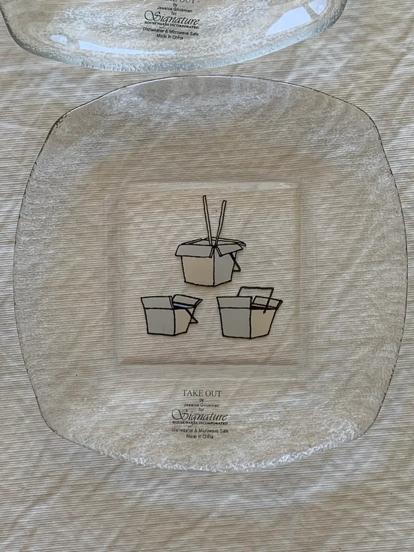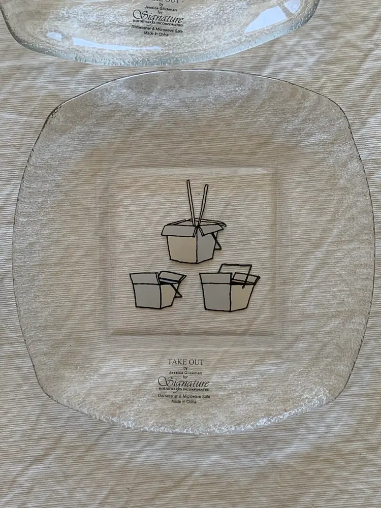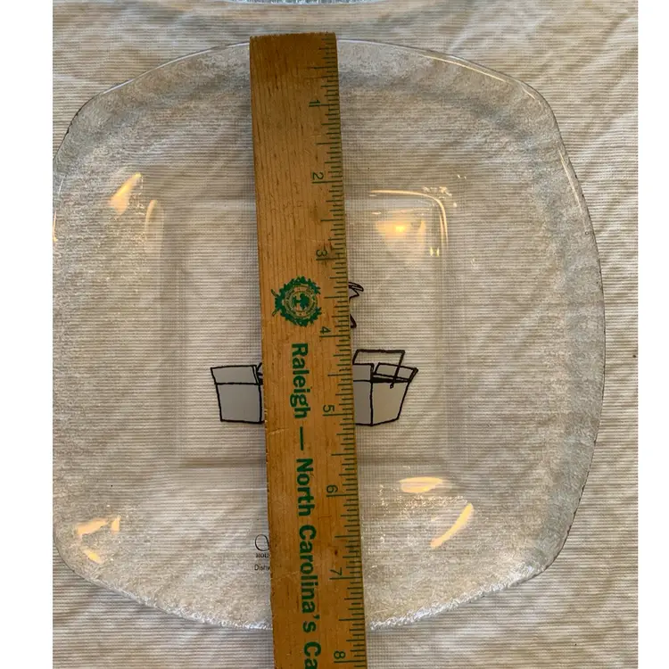 Heavy square glass with textured back side and take out images. Previously owned but in great condition. See all photos for condition details and measurements. I’m happy to answer any questions. Thanks for checking out my listings.