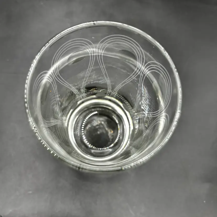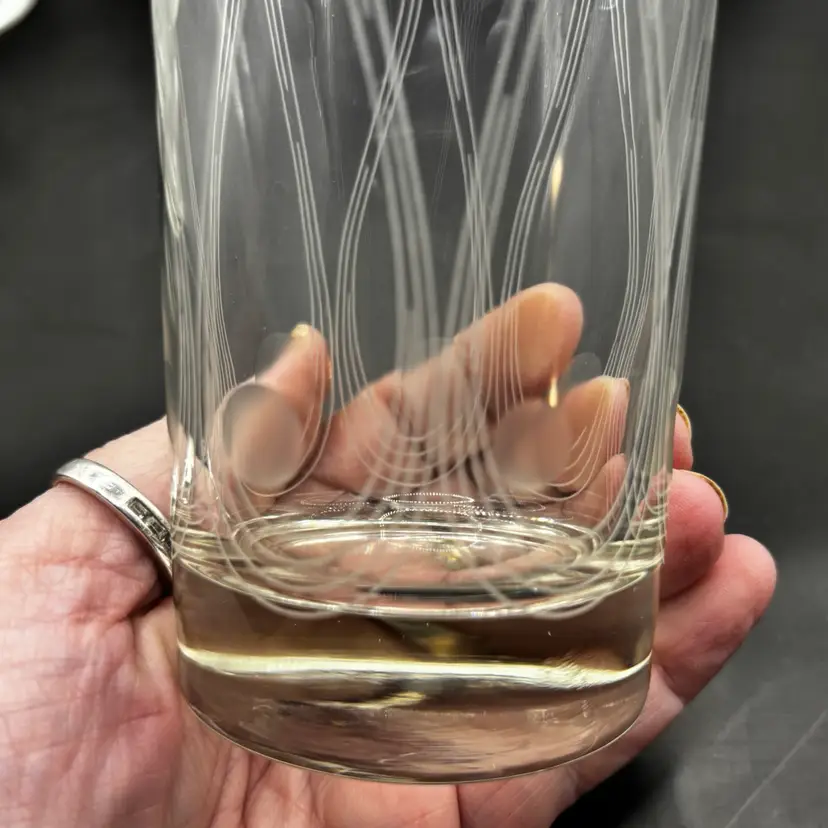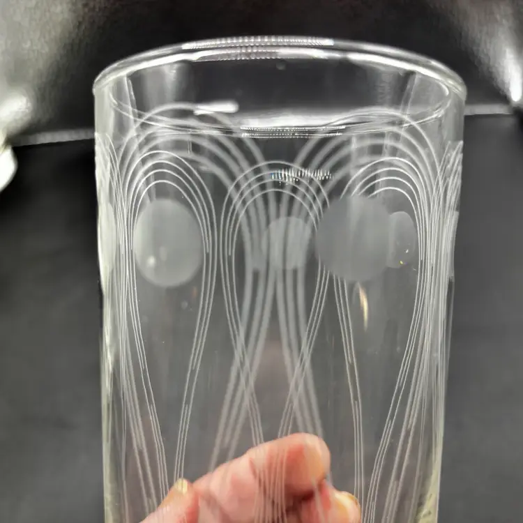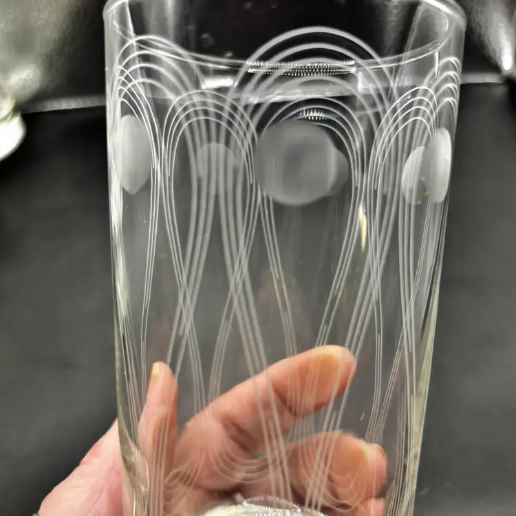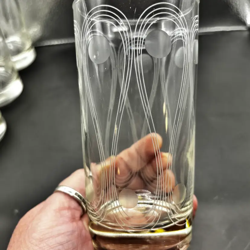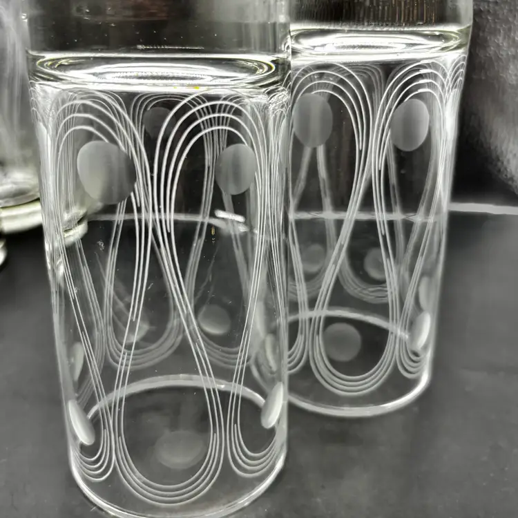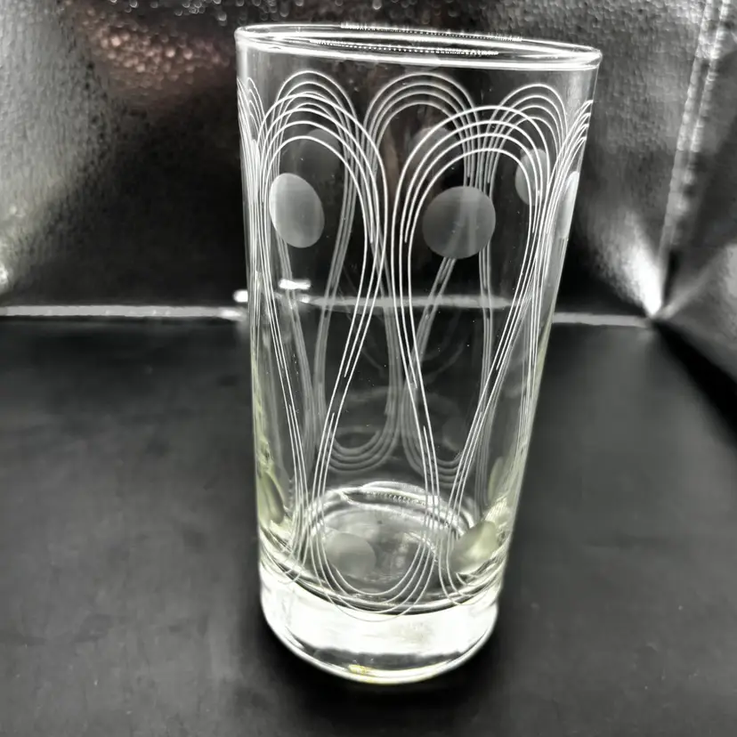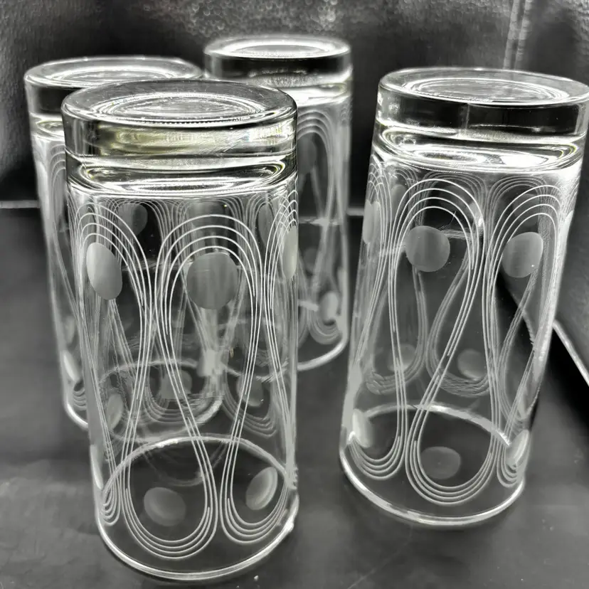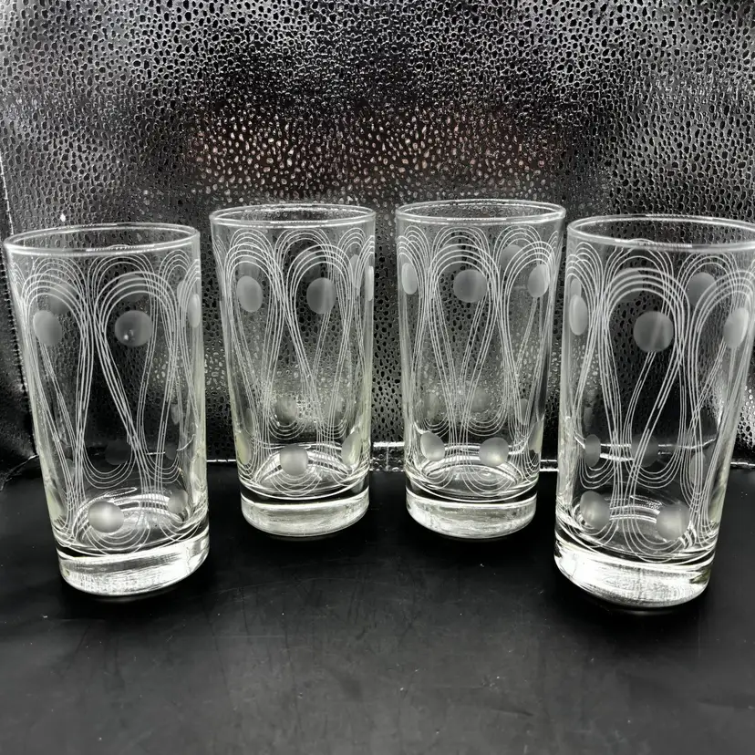 4 Libbey Glasses White Swirls & Frosted Dots 5-1/2" MCM Highballs Art Deco