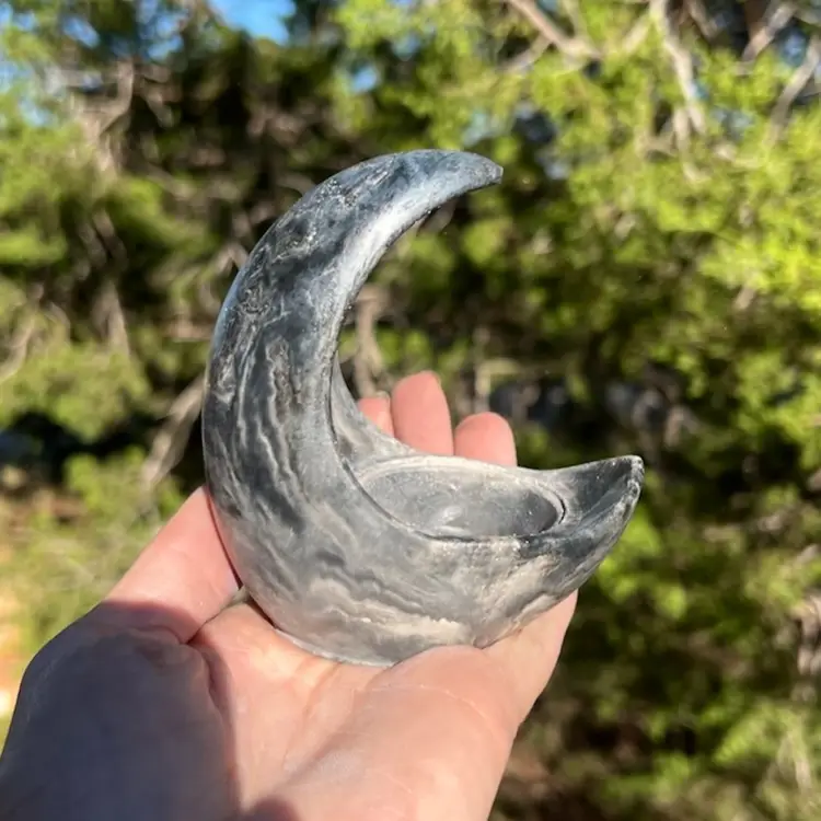 Hand poured concrete with charcoal hues. Can be used for tea light or air plant.