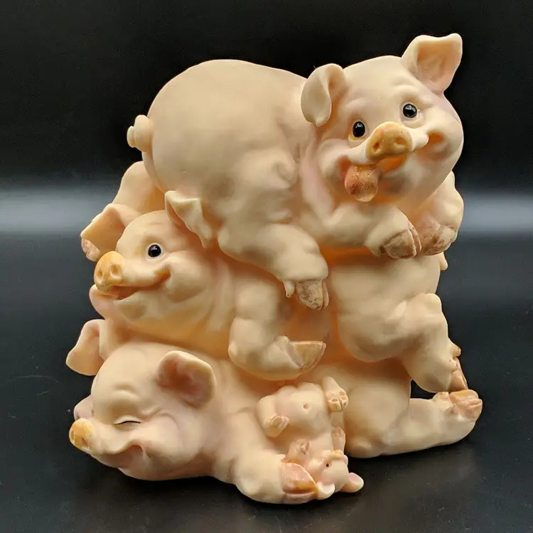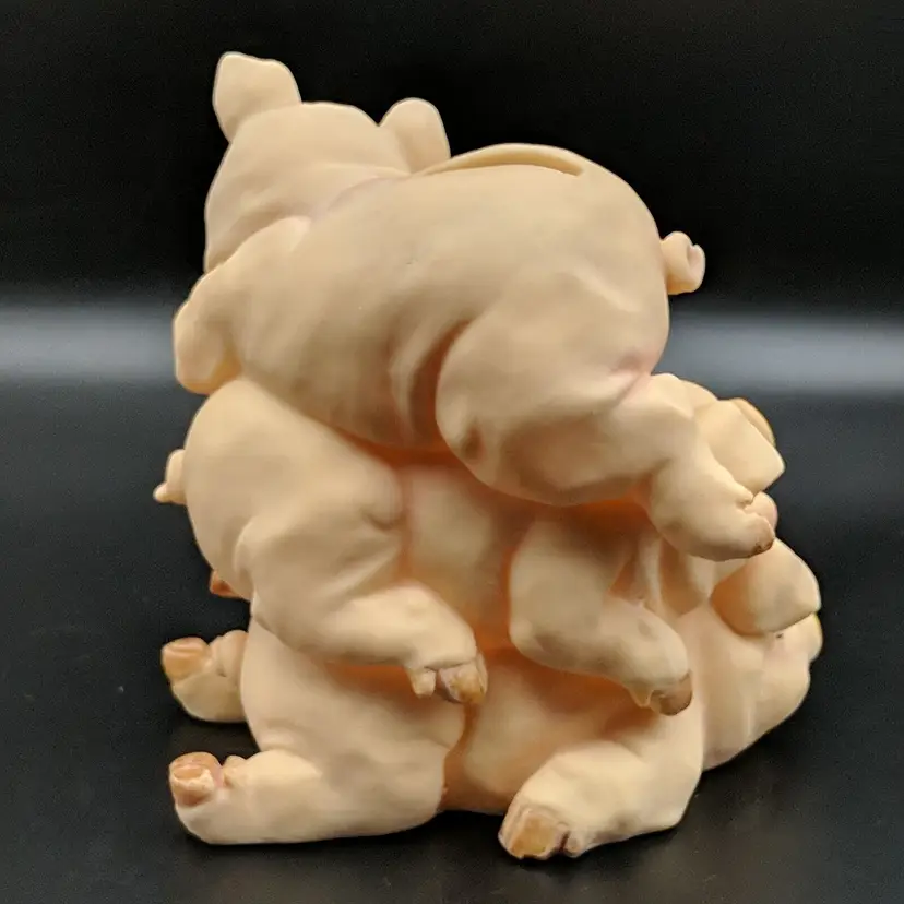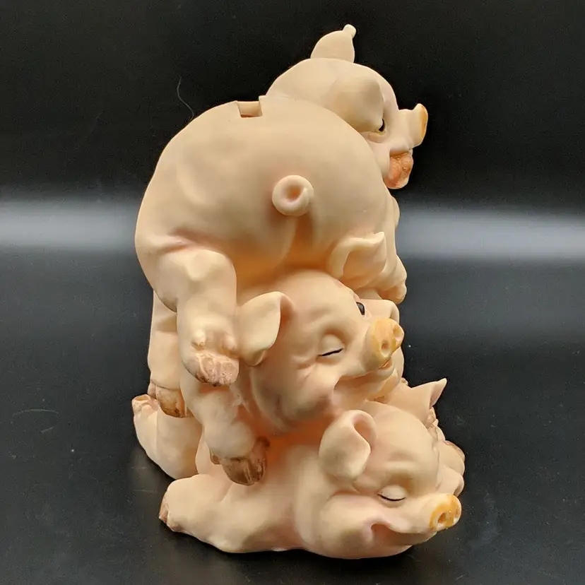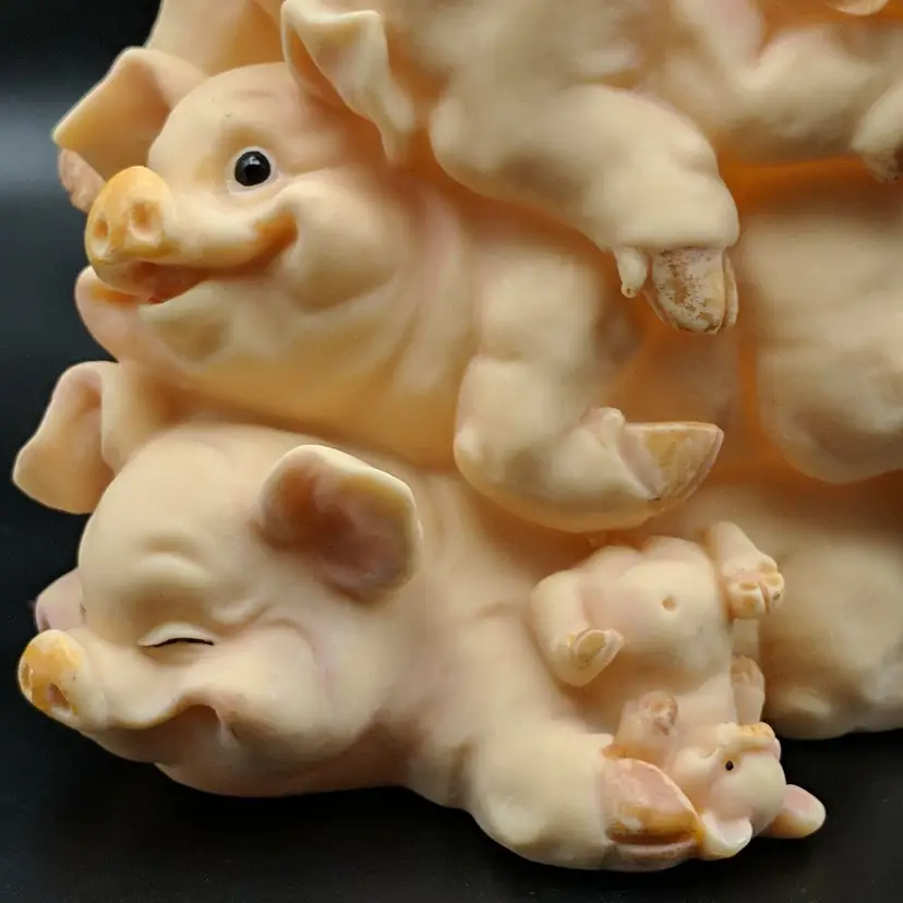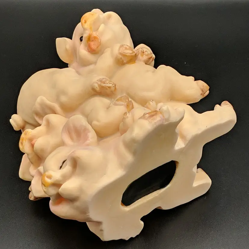 Paint wear on hooves, includes stopper Brand: Unknown Animal Class: Pig Item Height: 5 in Theme: Animals Original/Reproduction: Unknown Material: Plastic Country/Region of Manufacture: Unknown Item Width: 5.25 in Item Weight: 9.3 oz
