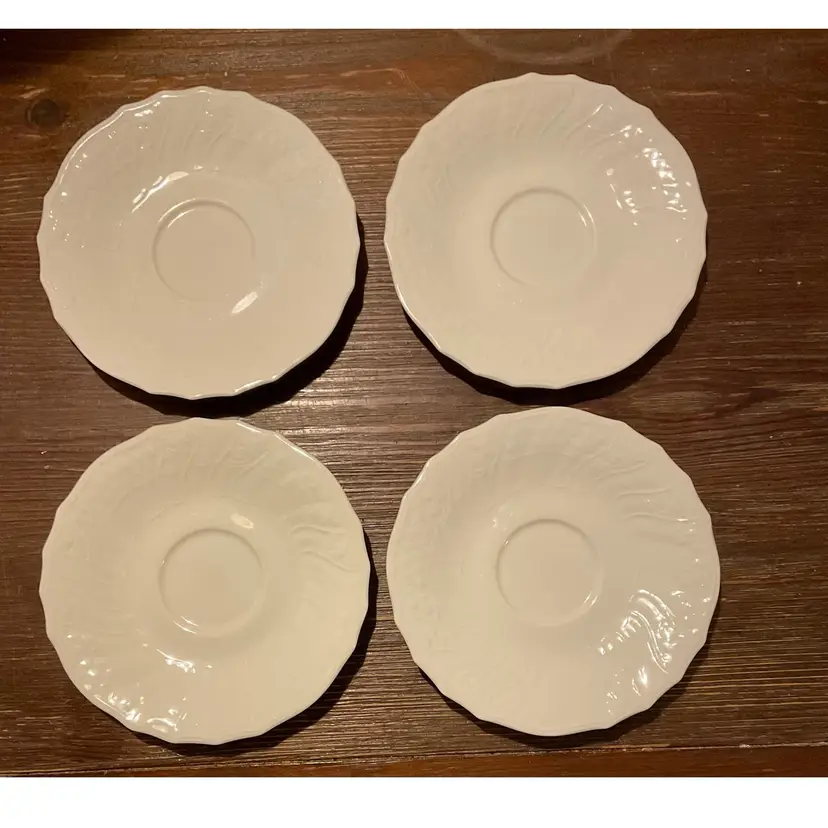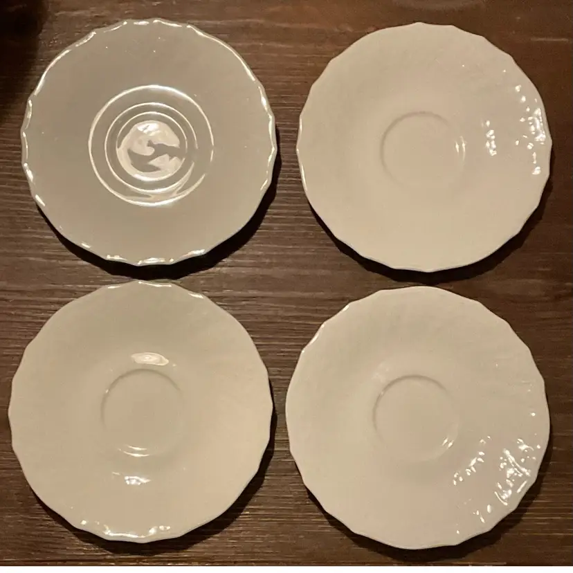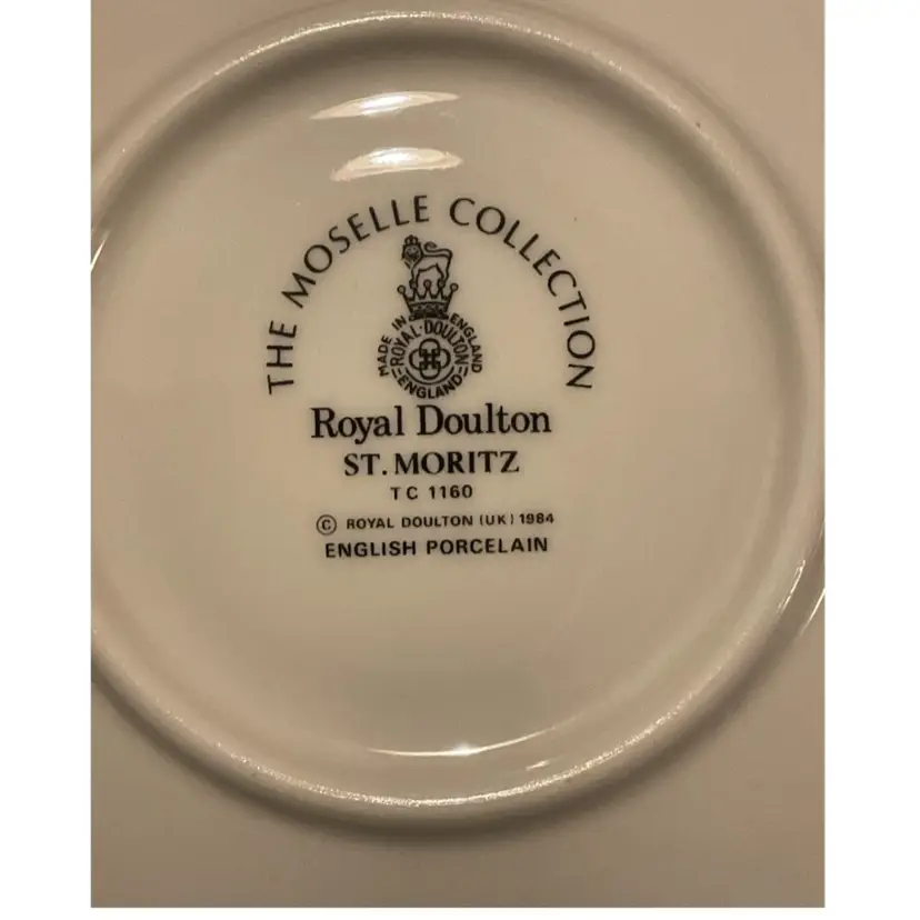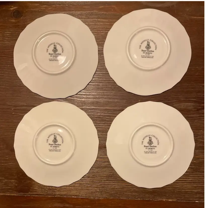Set of 4 Royal Doulton Moselle St Moritz saucers The Royal Doulton St Moritz pattern (TC1160) is part of the Moselle collection. English porcelain No chips or cracks