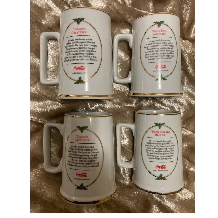 Set of (4) Cups Santa Cup Coca Cola Cup 1996 Coca Cola Collectors Edition Santa Coffee Cup Vintage Coffee Cup Vintage Coca Cola Cup