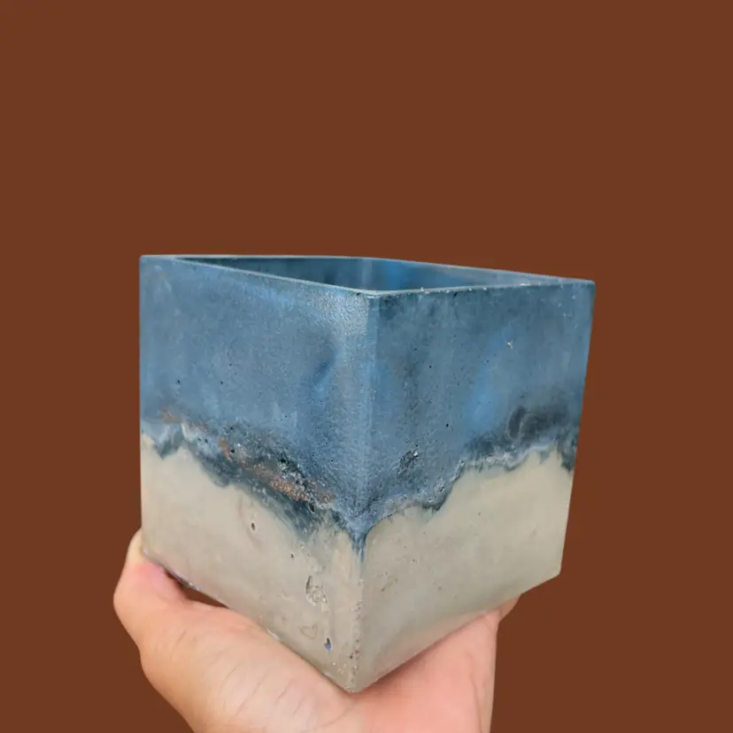 Hand-poured concrete planter using various dyes for color. All planters are sealed inside and out and have cork feet on bottom. Drainage is optional! Just DM me :)