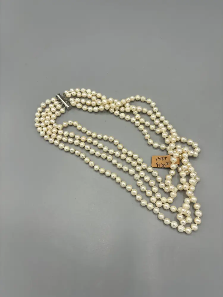 4 Strand Pearl Barrel clasp that has a silver tone clasp. This is a show stopper at any event or daily wear. This is in great condition.