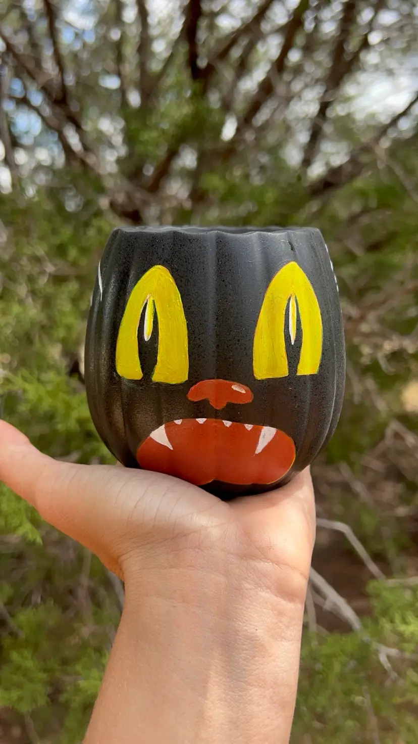 Hand poured concrete pumpkin planter, using paint and concrete. Drainage included.