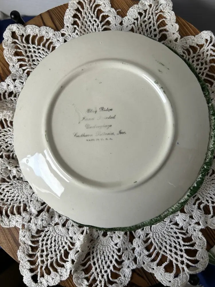 All 4 are in very good unused condition. 2 have a few lines of age related crazing on the bottom of the plates. They measure 7.25” in diameter. The back stamp indicates that they were manufactured in the late 1930’s to early 40’s.
