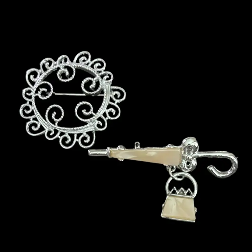 Lot of 4 vintage silver tone brooch. Top 2 are Sarah Coventry, USA and are marked. All are in nice condition