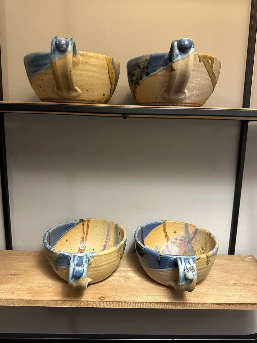 4 Vintage Stoneware soup bowls Signed Ayer’s ‘95 In excellent, like new condition No chips or cracks