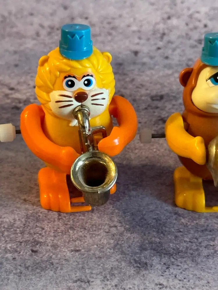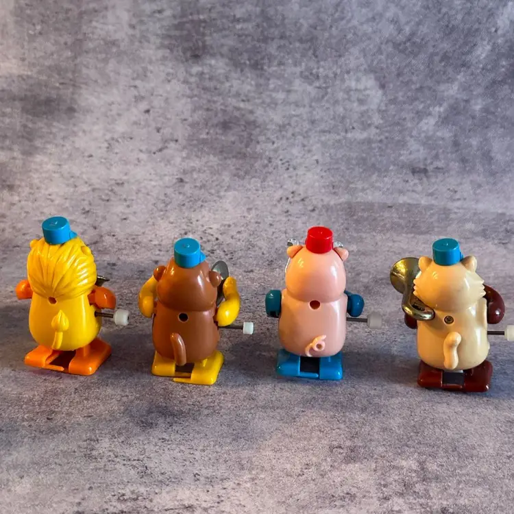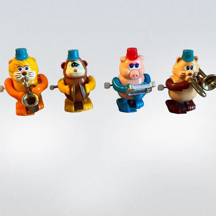 4 cute little wind up toys.(they are a little over wound so don’t walk very well) By Tomy. Lion, Bear, Pig, Cat. From the 1980’s. Perfect for a collectors display.