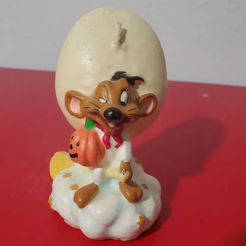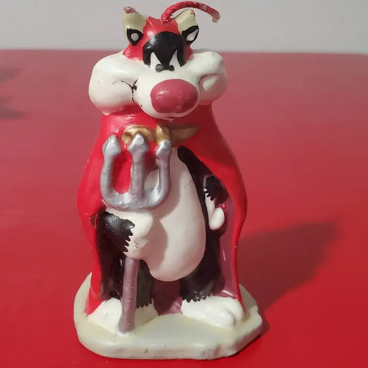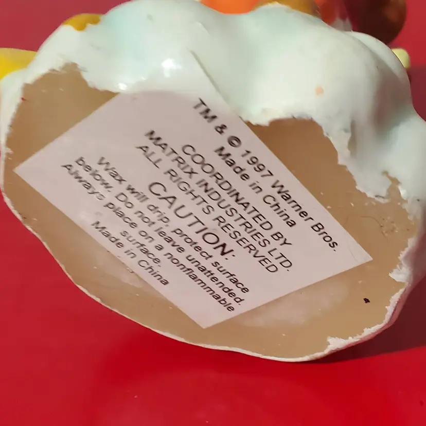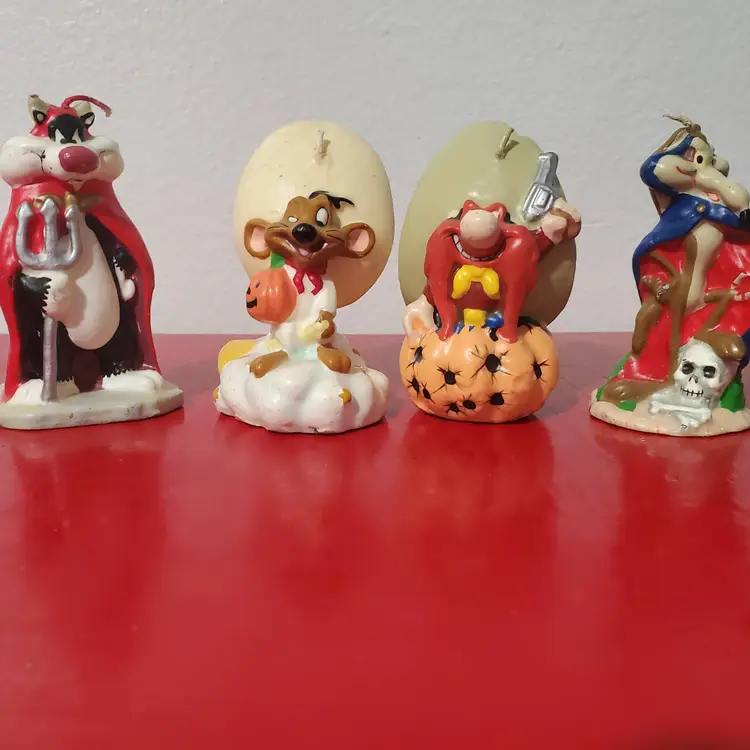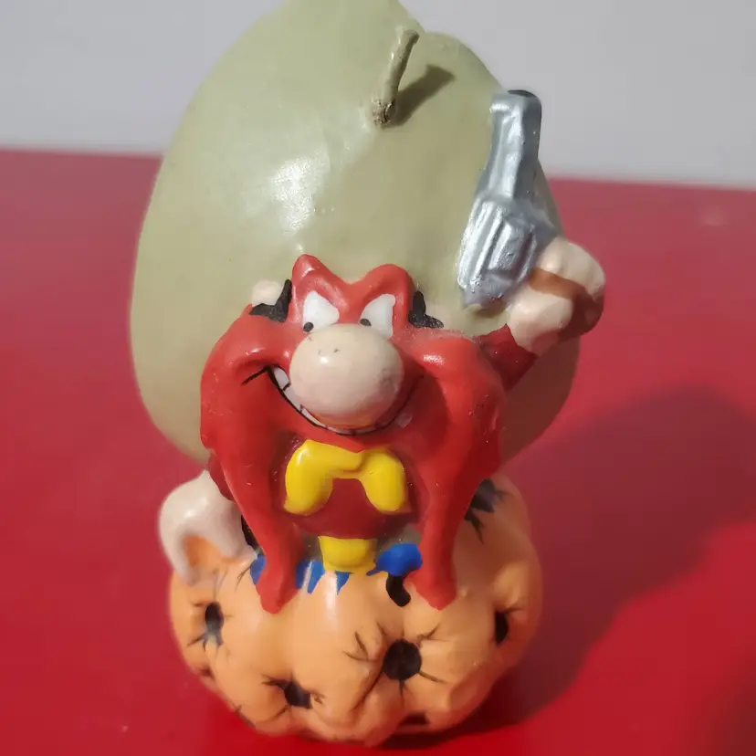 The candles have not been burned but does show dust and dirt from sitting. Yosemite Sam's hat is broken on the back.